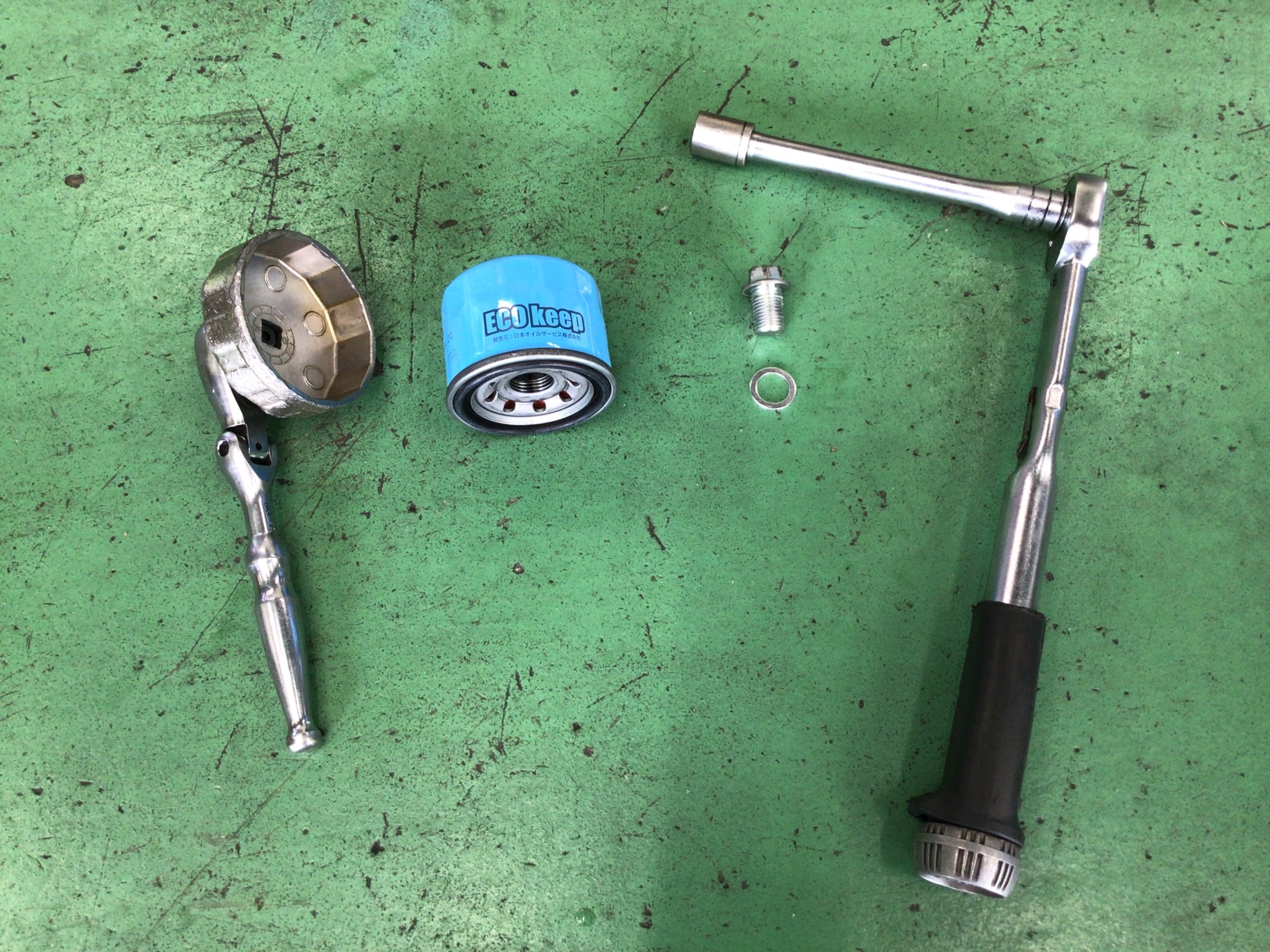 特にドレンボルトの締め付けは、車両メーカー指定のトルク値にて、トルクレンチにて締結します。