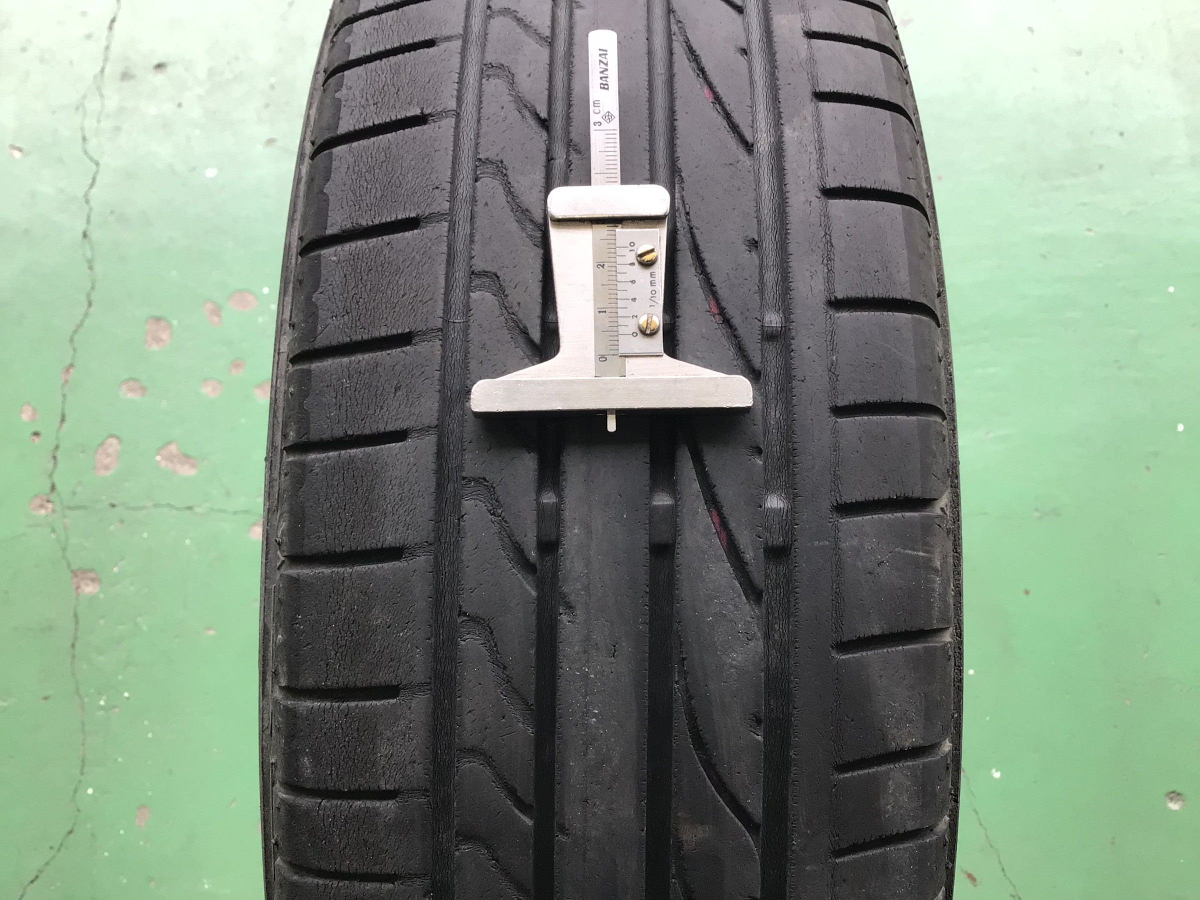 タイヤは法的には1.6mmのところにあるスリップサインが露出するまで使用可能ですが、