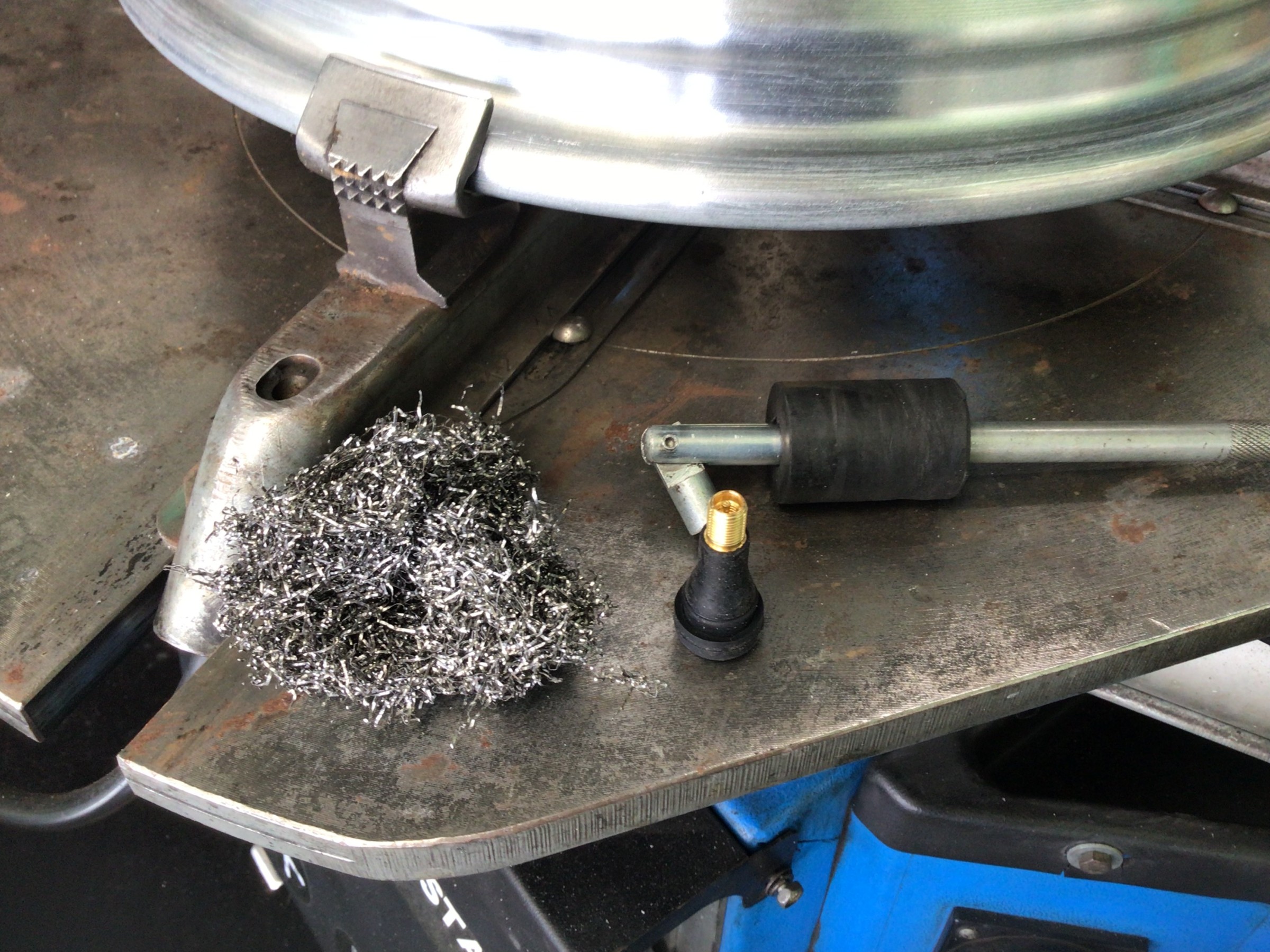 このカスが付着したままタイヤを組み付けますとエア漏れの原因となりますので、