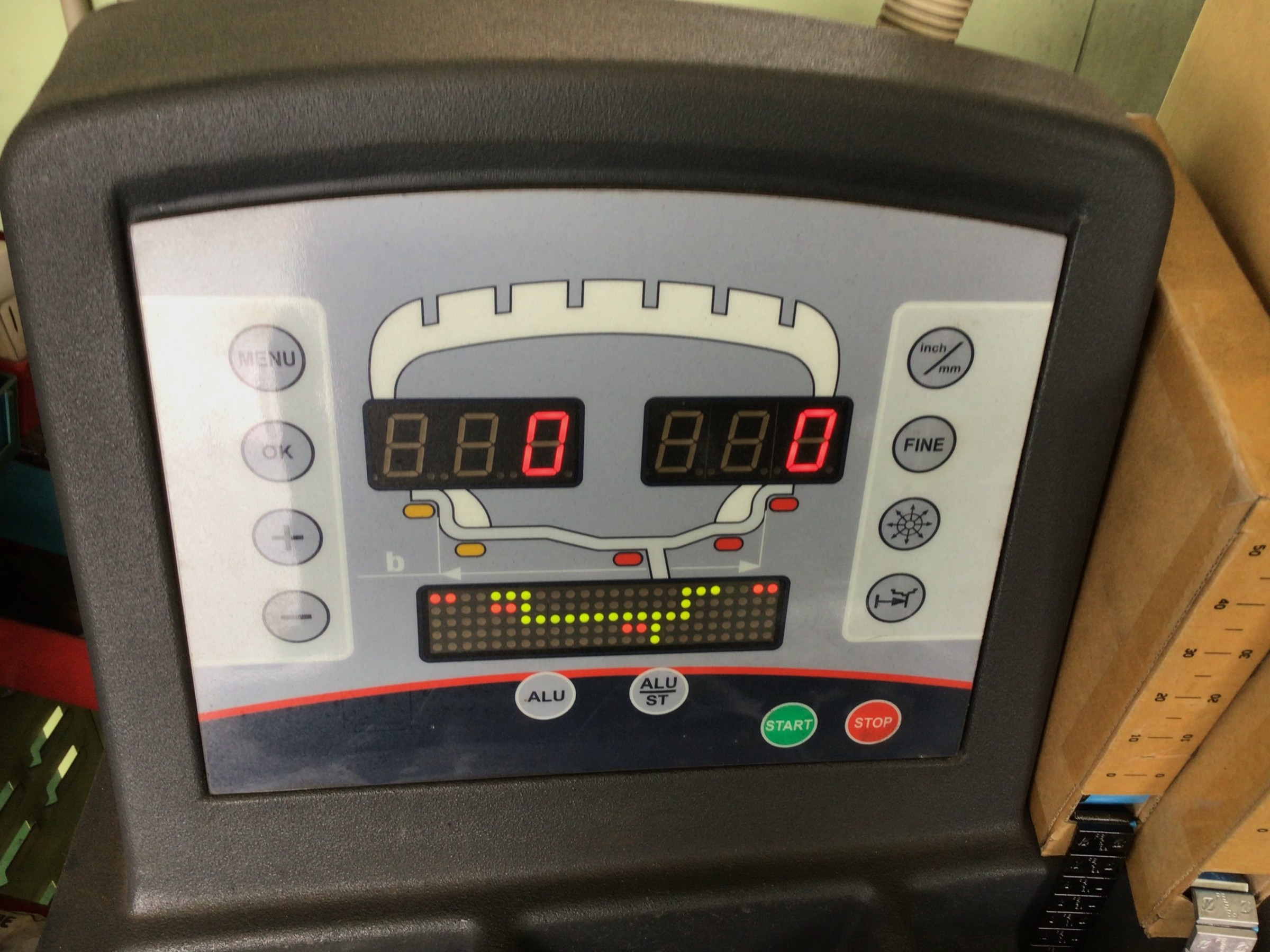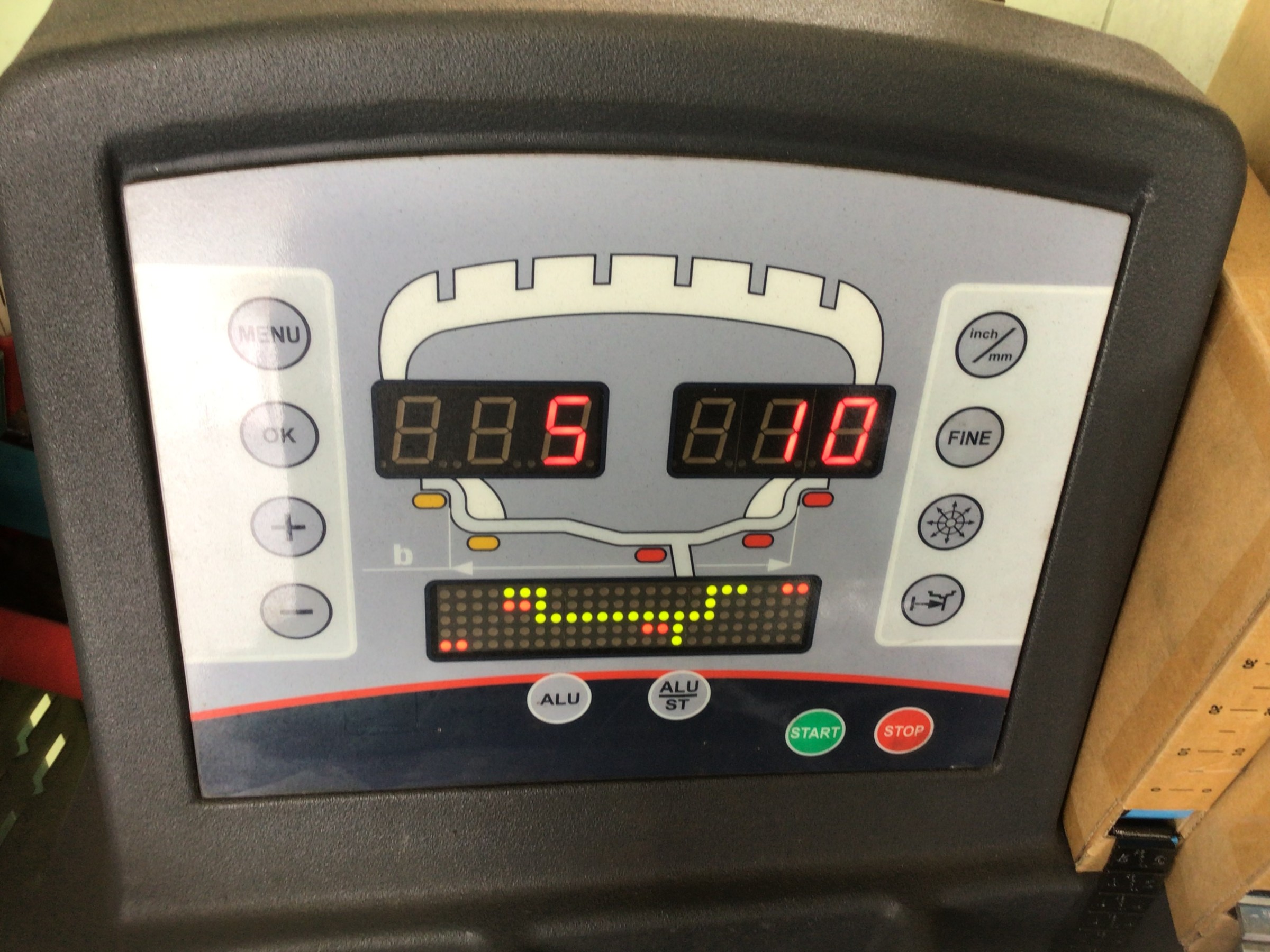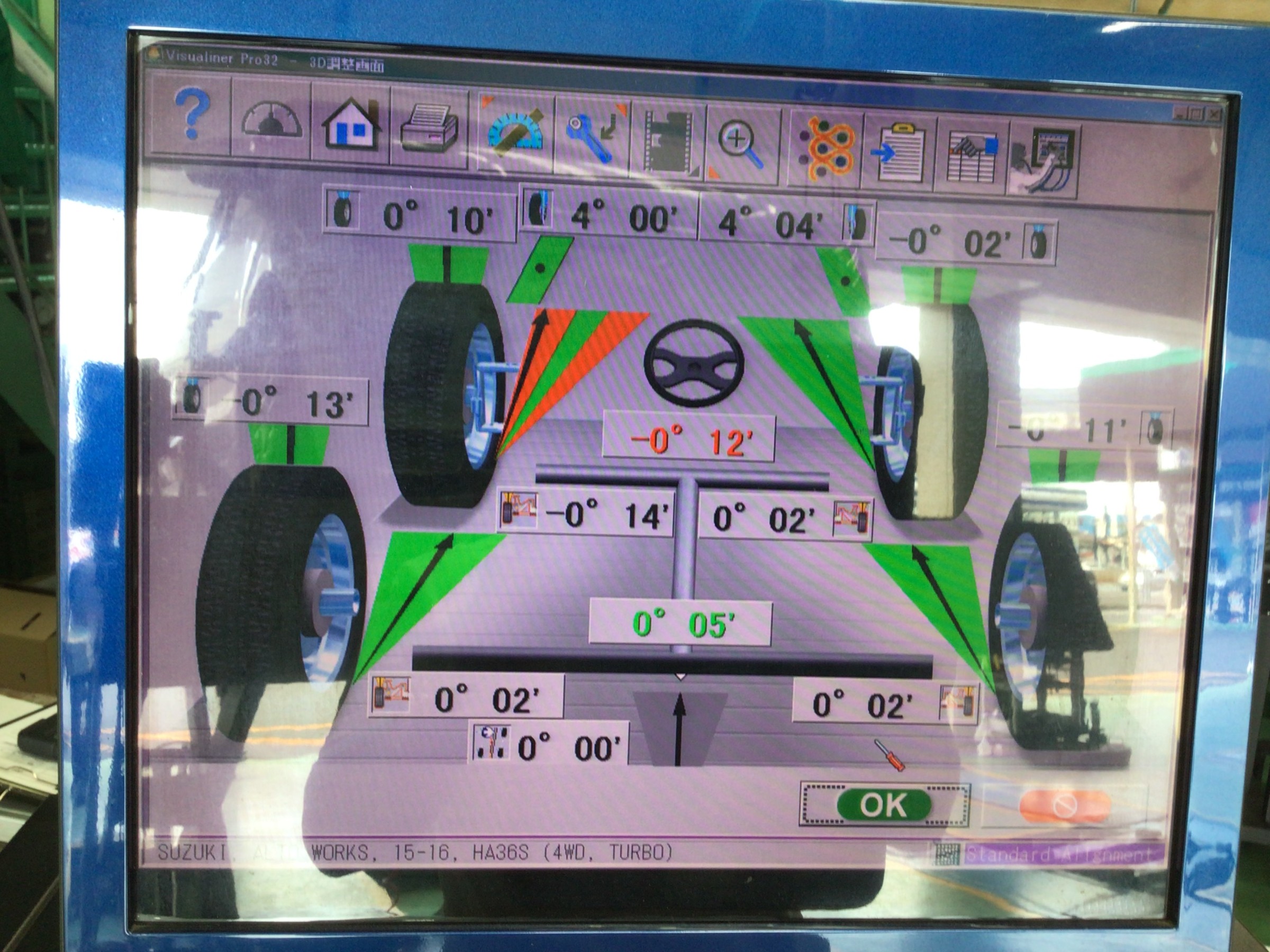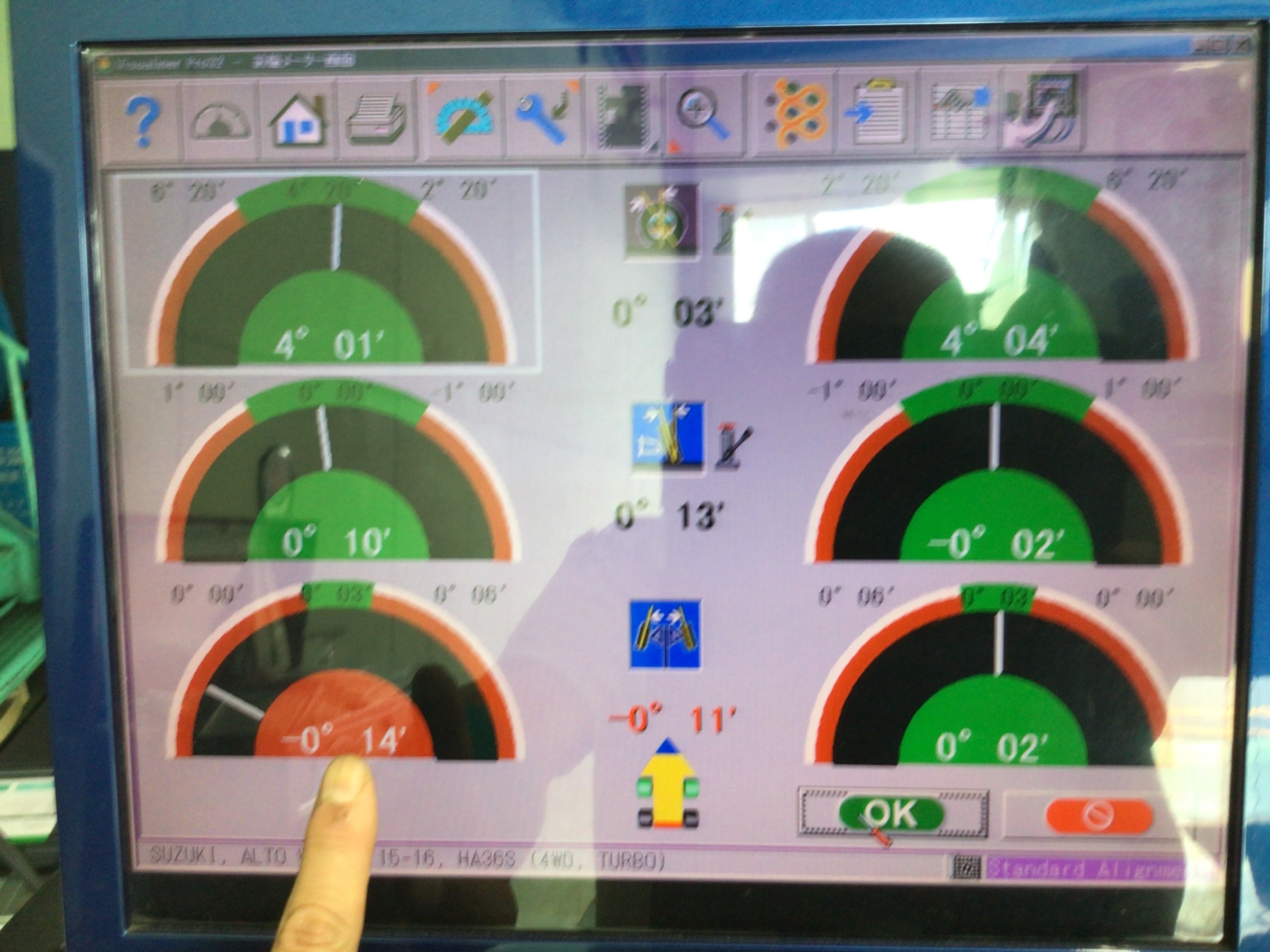 画面左奥のレッドゾーンになっている部分が左前輪のトー角度です。