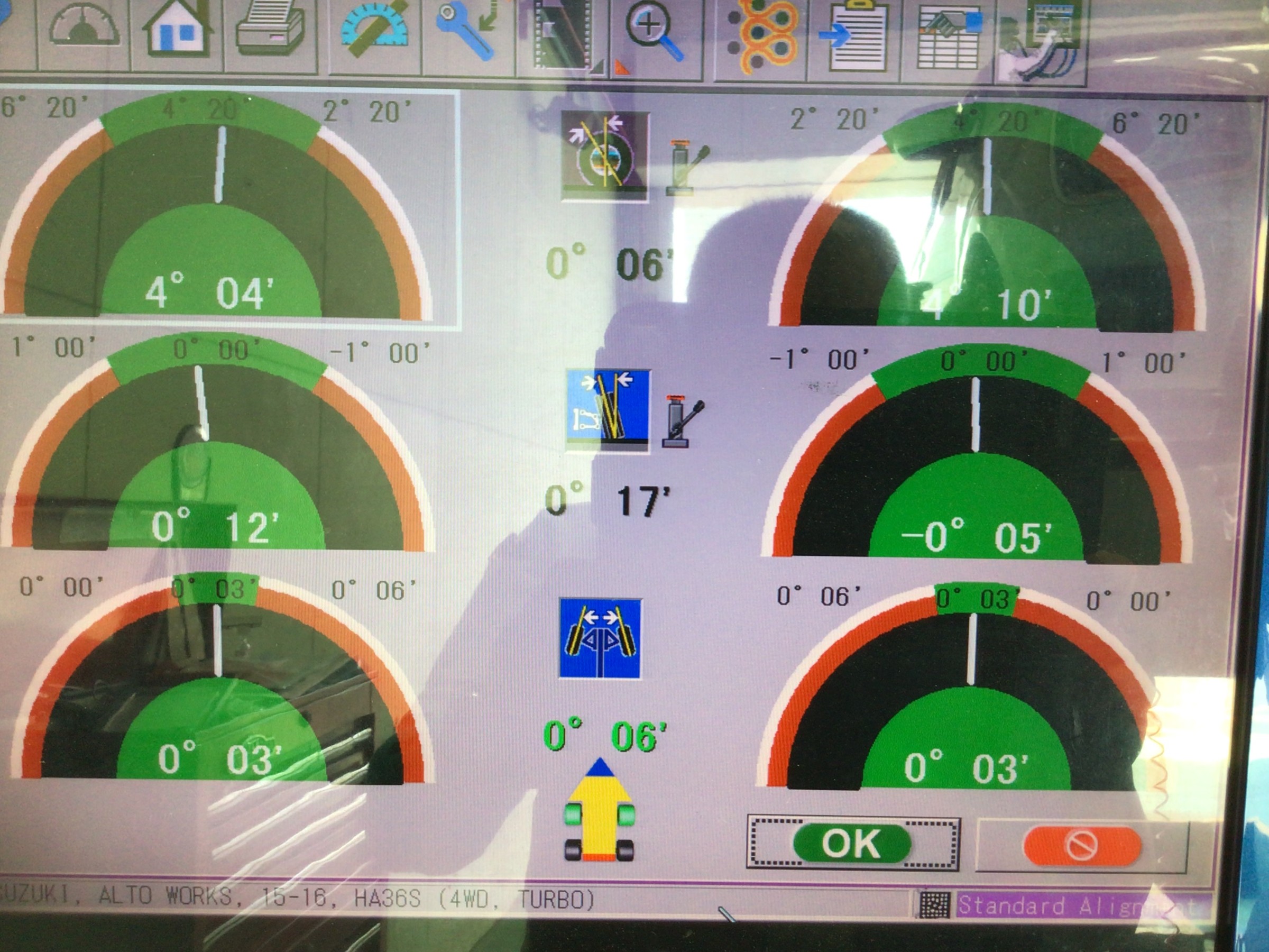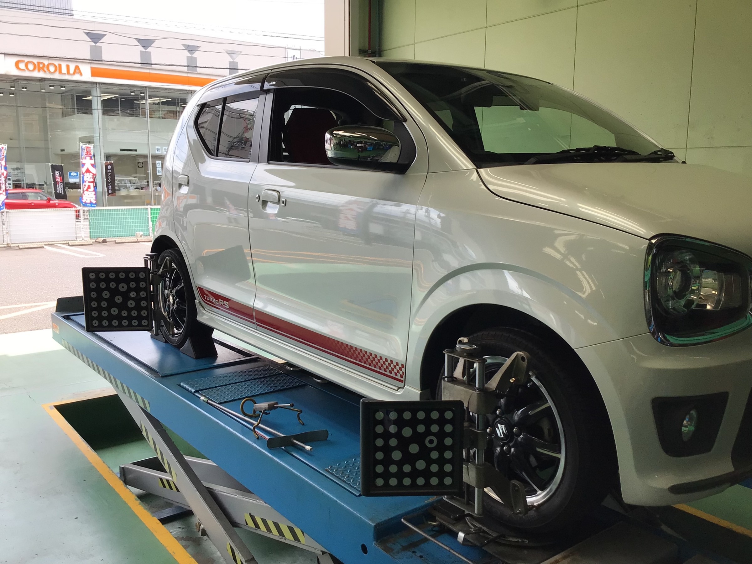 さて本日の話題はというと、スズキ HA36S型アルト ターボRS夏タイヤ交換&アライメント調整を