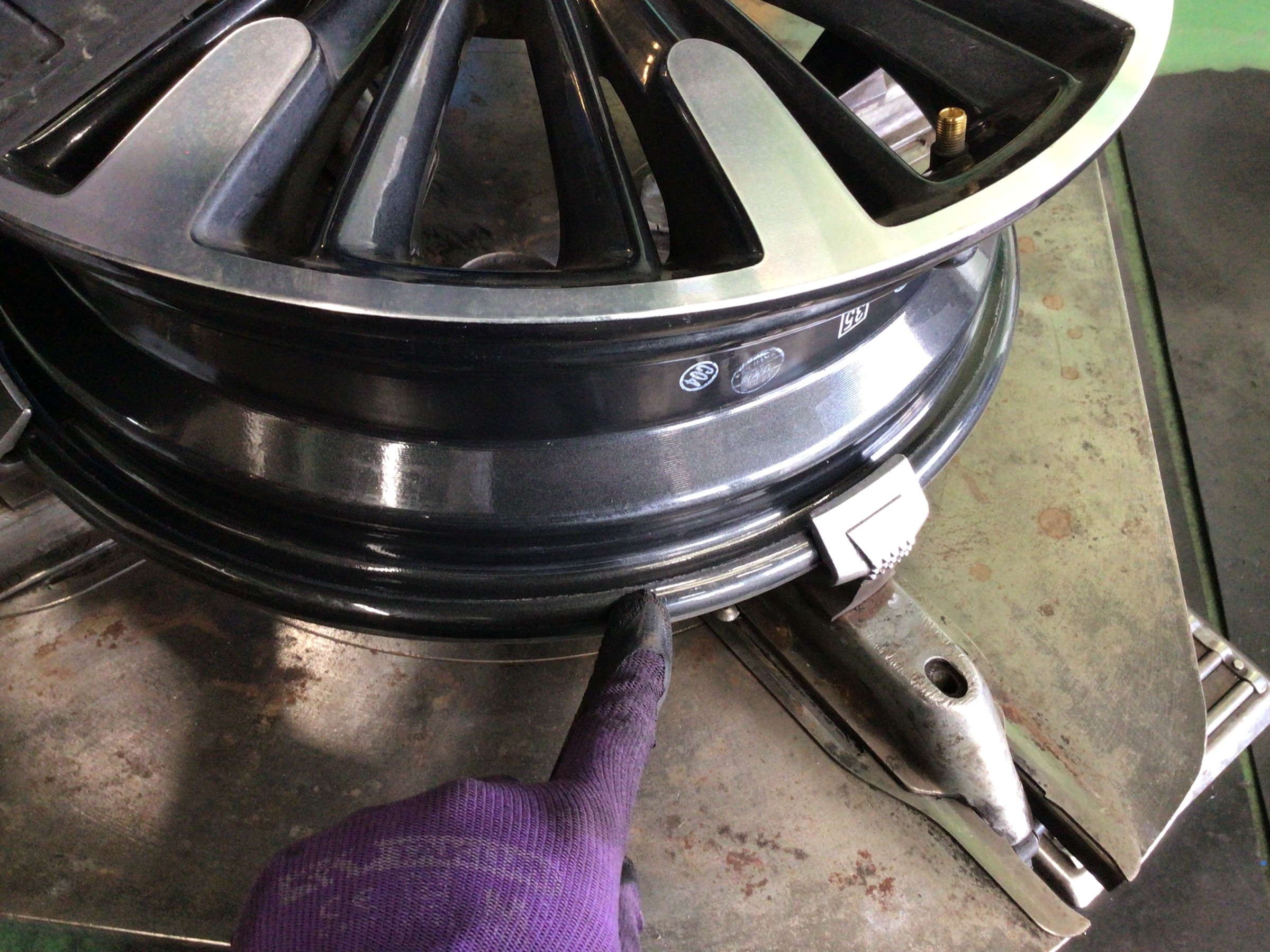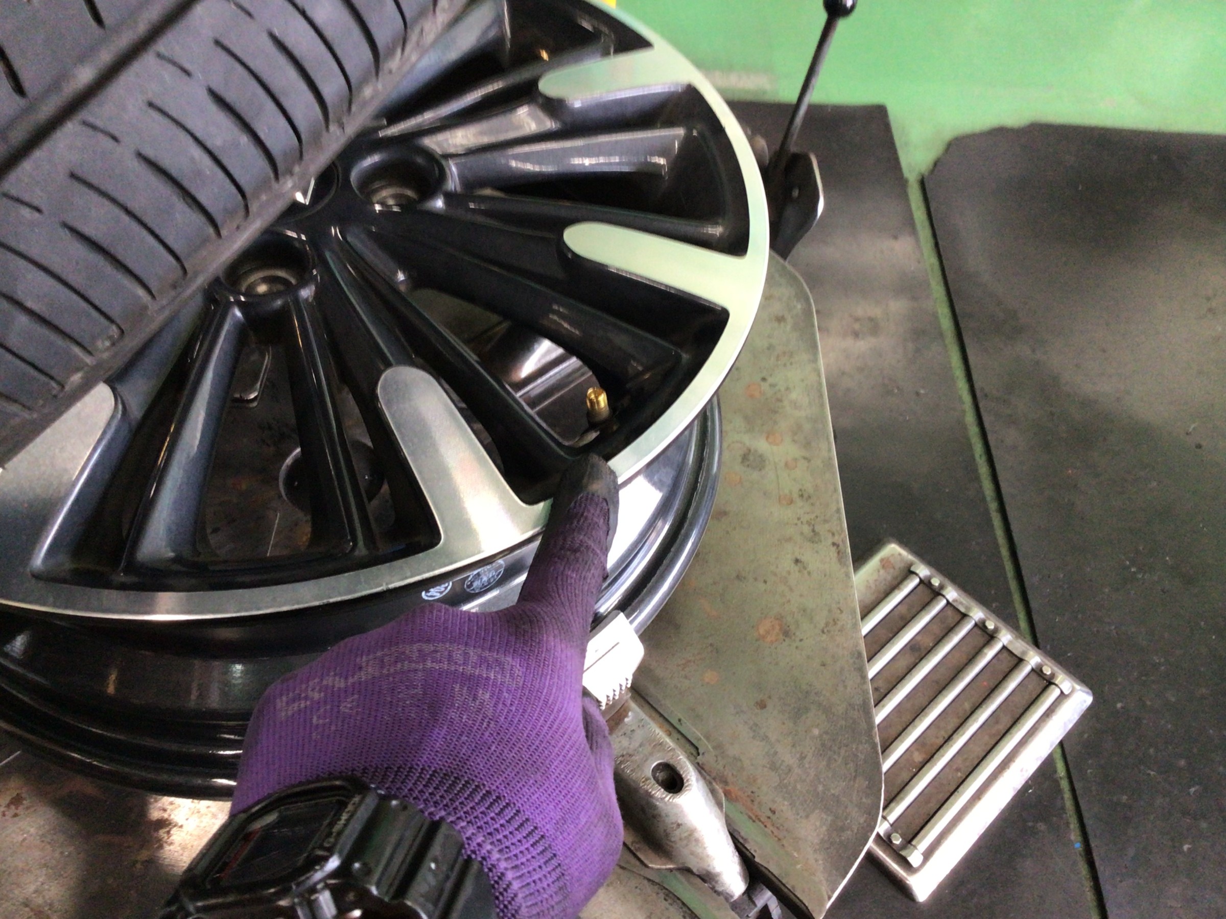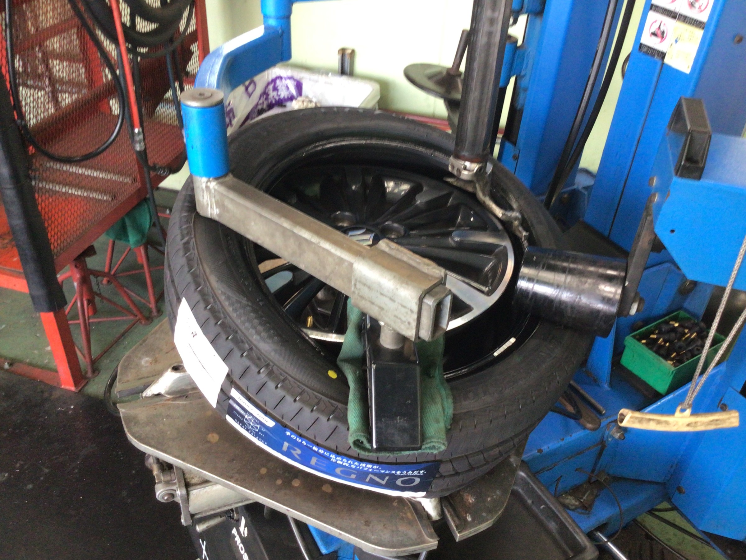 偏平タイヤなのでチェンジャーヘルパーを使用しますが、ホイールにキズが付かないよう、