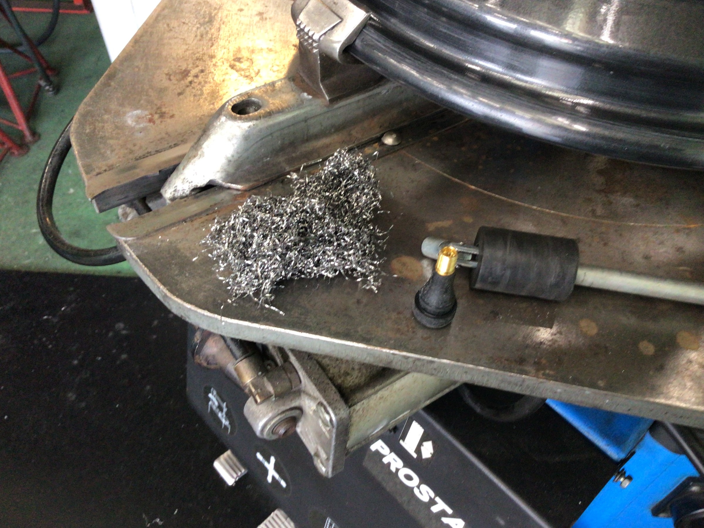 このカスが付着したままタイヤを組み付けますとエア漏れの原因となりますので、