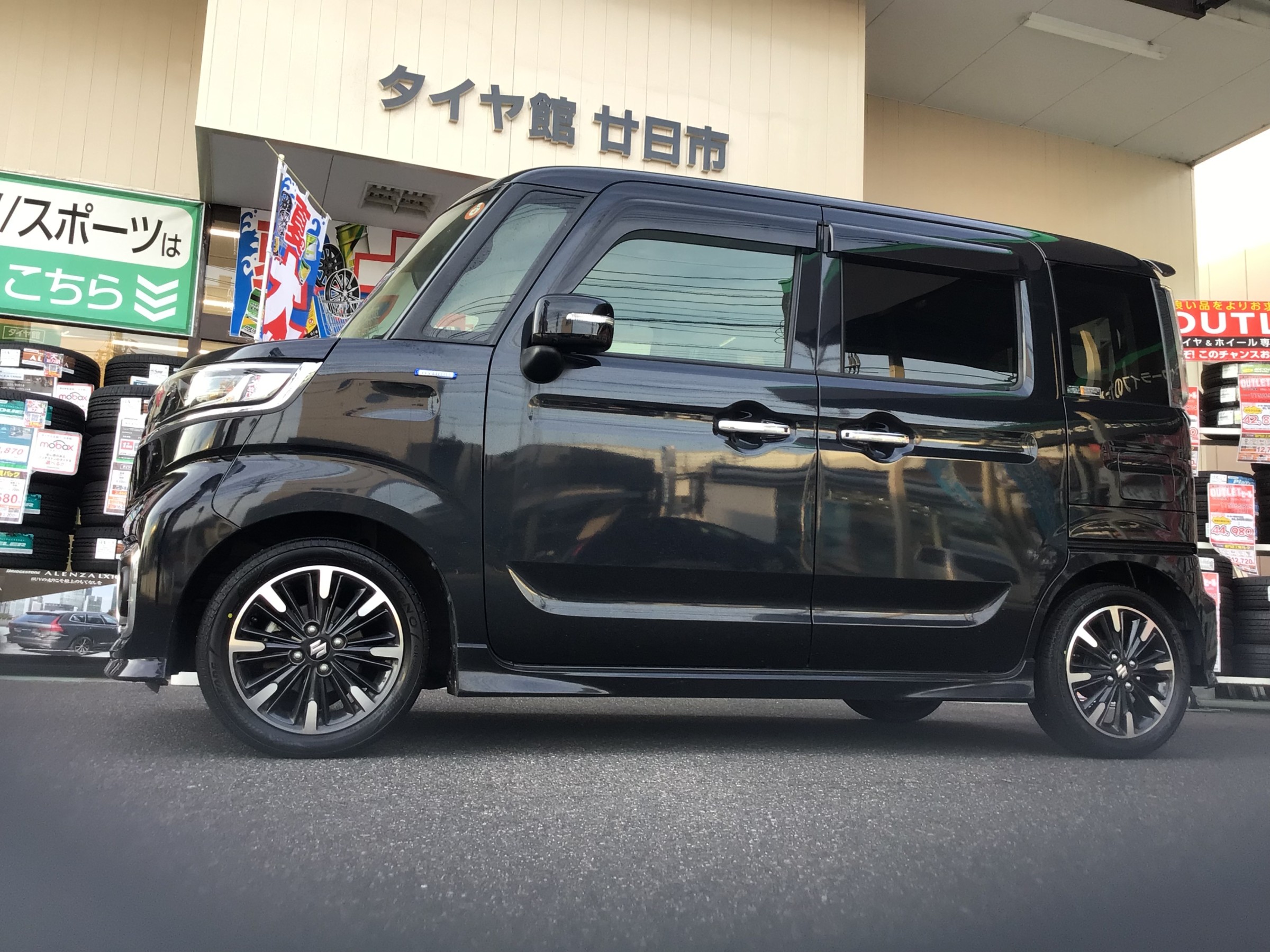 さて本日の話題はというと、スズキ スペーシアカスタムに夏タイヤ交換をご用命頂きました!