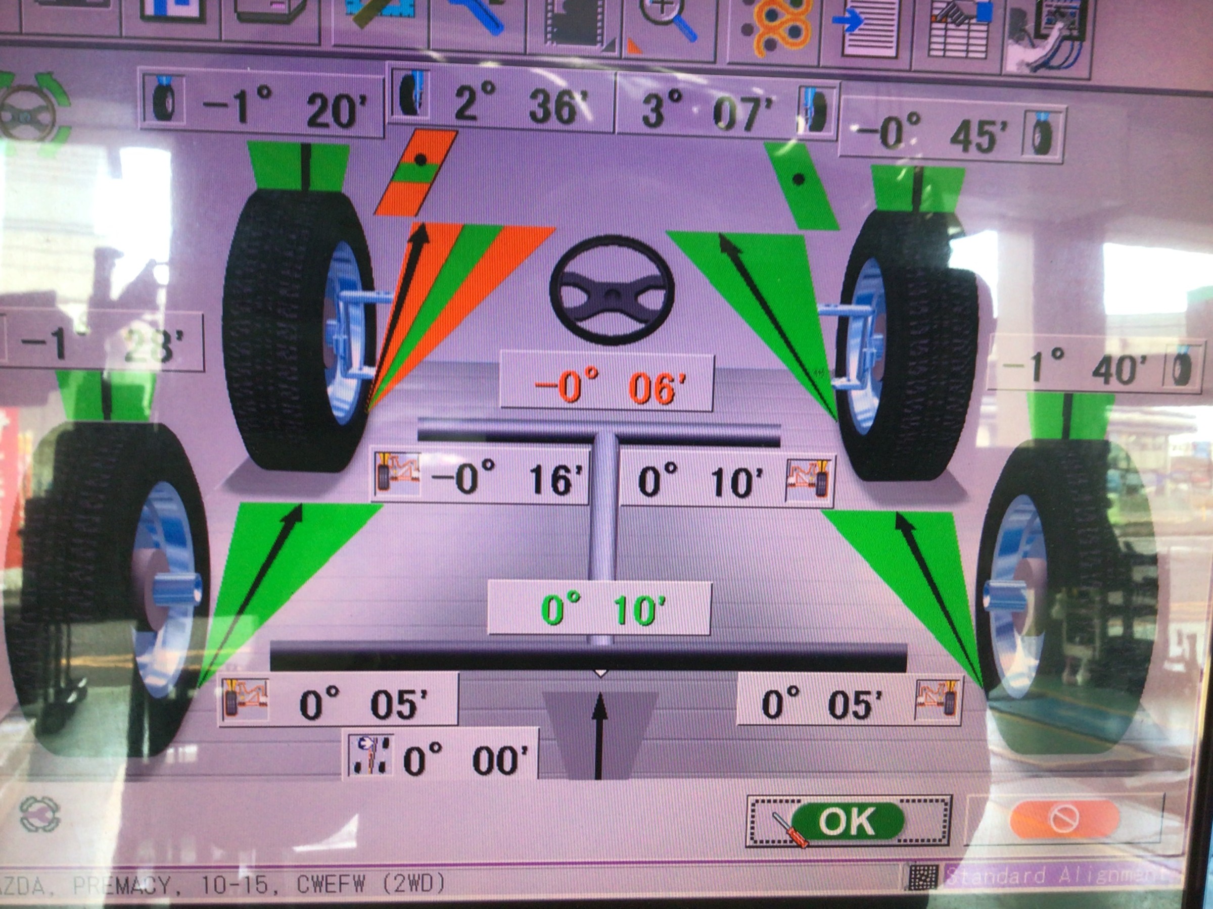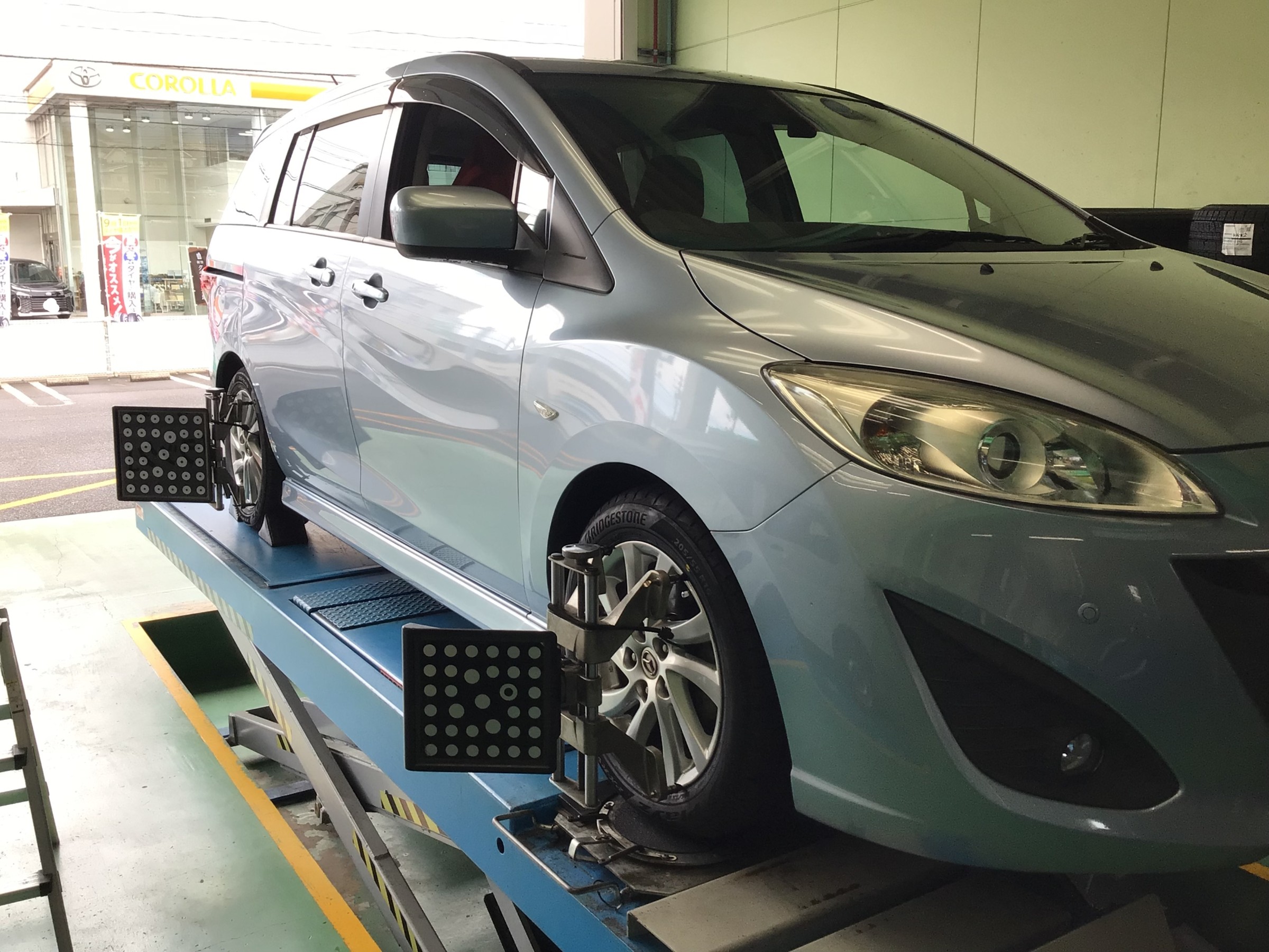 マツダ プレマシー 夏タイヤ交換&アライメント調整作業完了です!
