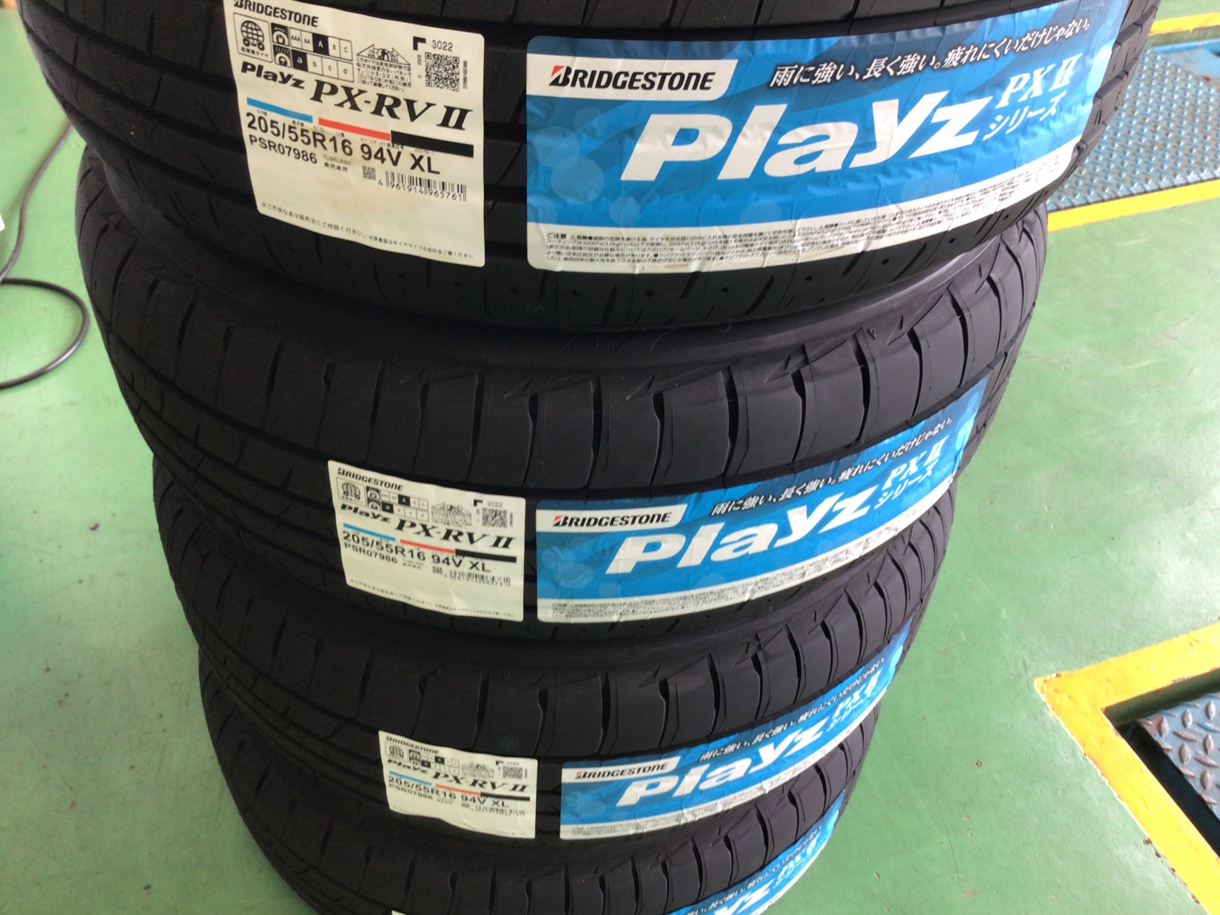 タイヤの銘柄はブリヂストン プレイズ PX-RVⅡで、サイズは205/55R16です。