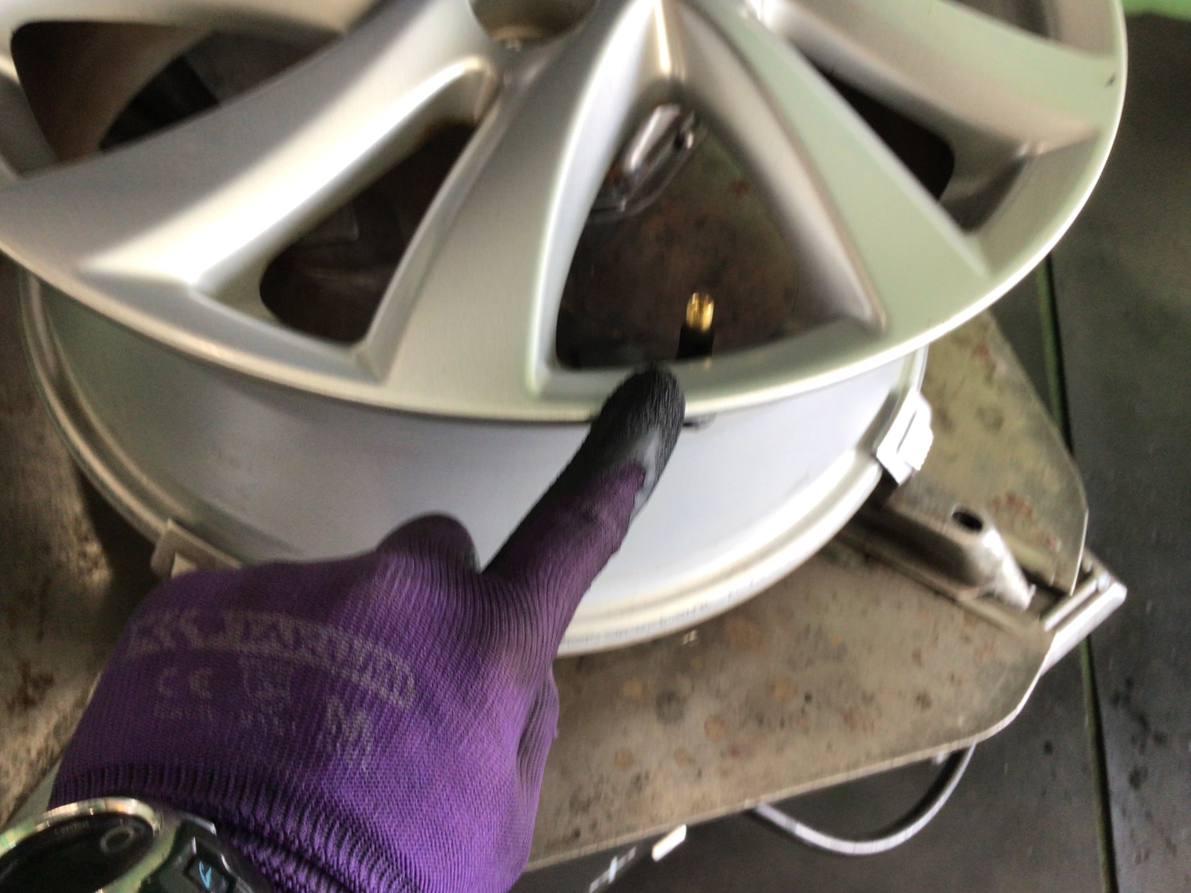 このカスが付着したままタイヤを組み付けますとエア漏れの原因となりますので、