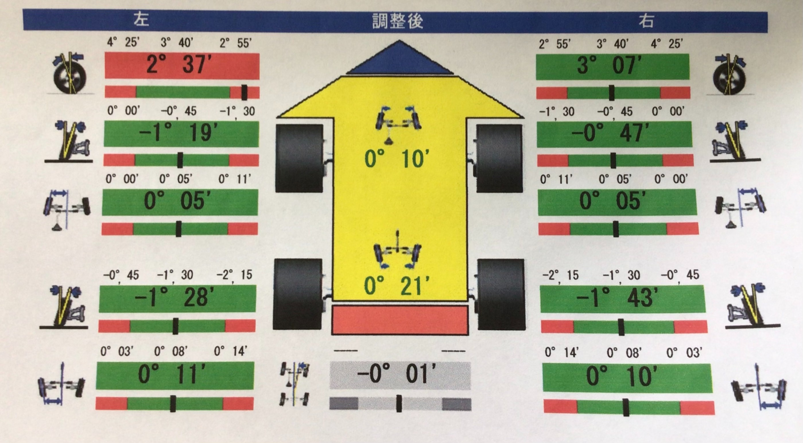 画面左奥のレッドゾーンになっている部分が左前輪のトー角度です。