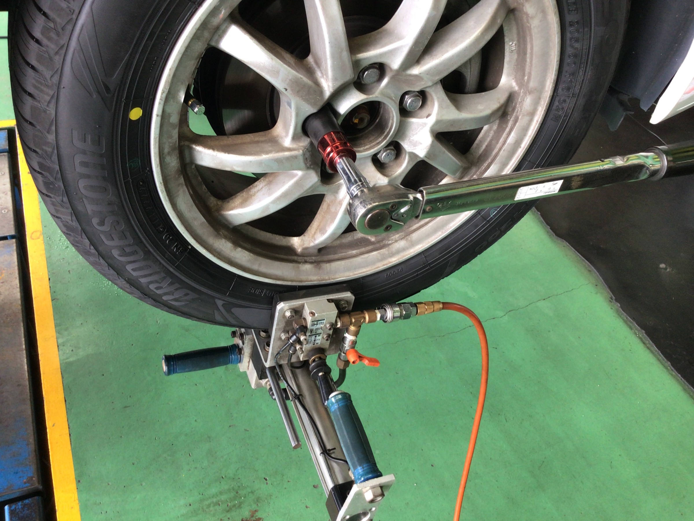しかしこのマシンをタイヤに装着し、特殊な超微振動を与えながらナットを徐々に締め付けていきますと、