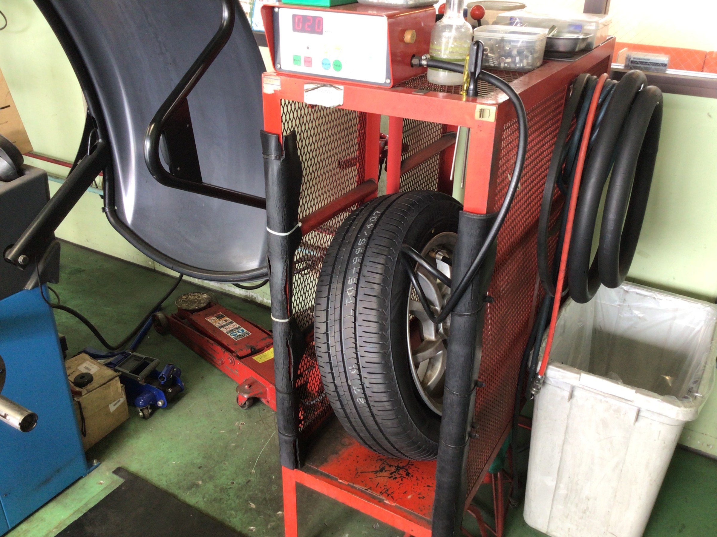 組付け後はエア充填作業ですが、充填作業は危険が伴います!