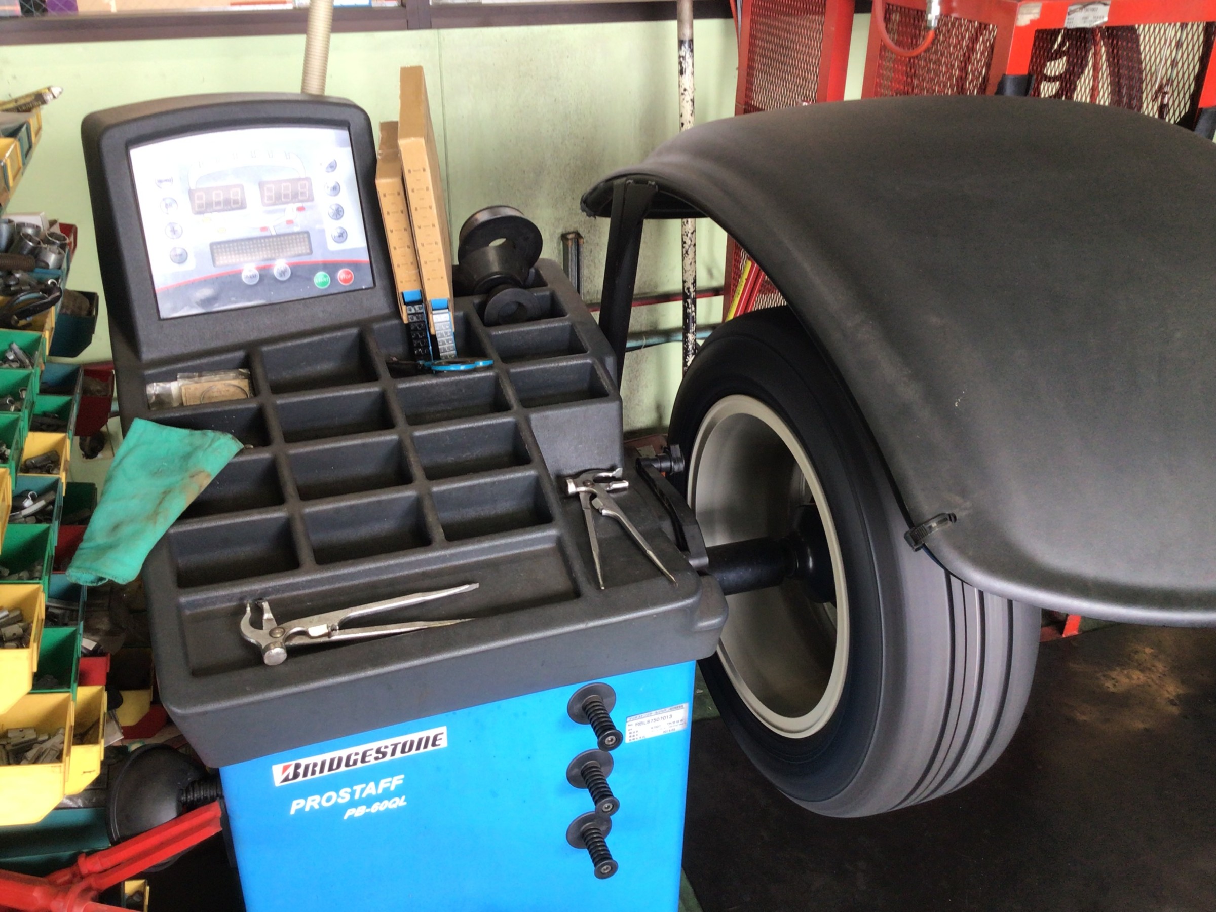 交換清掃後はタイヤを組み付けていきます。