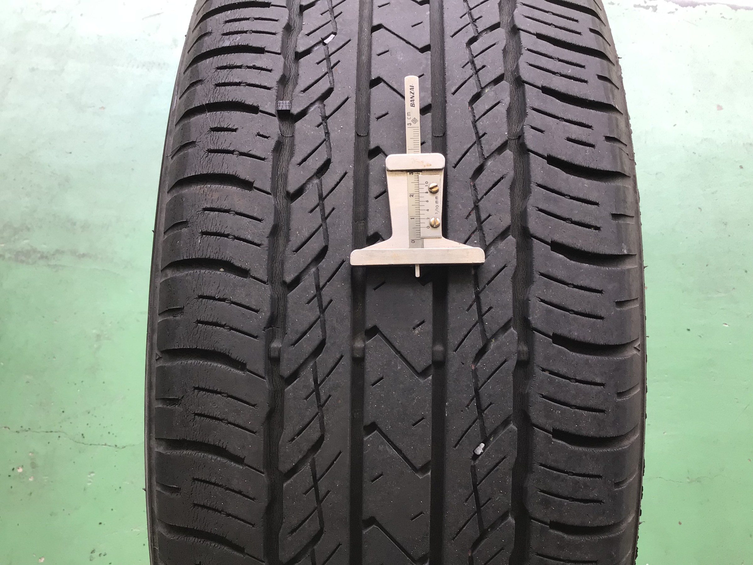 タイヤは法的には1.6mmのところにあるスリップサインが露出するまで使用可能ですが、