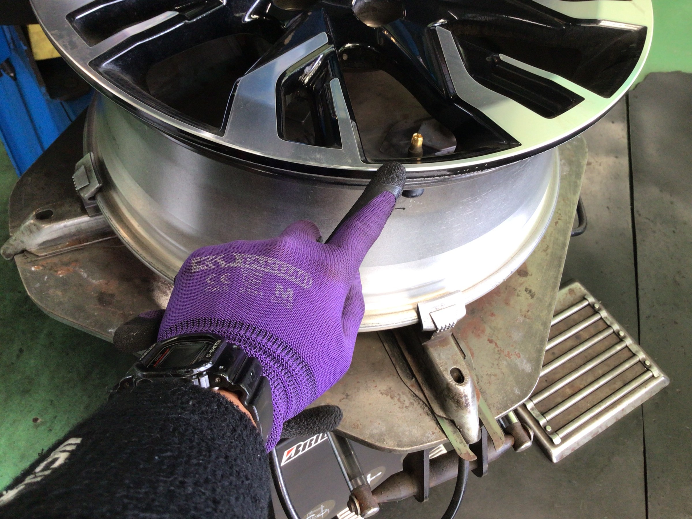 交換清掃後はタイヤを組み付けていきます。