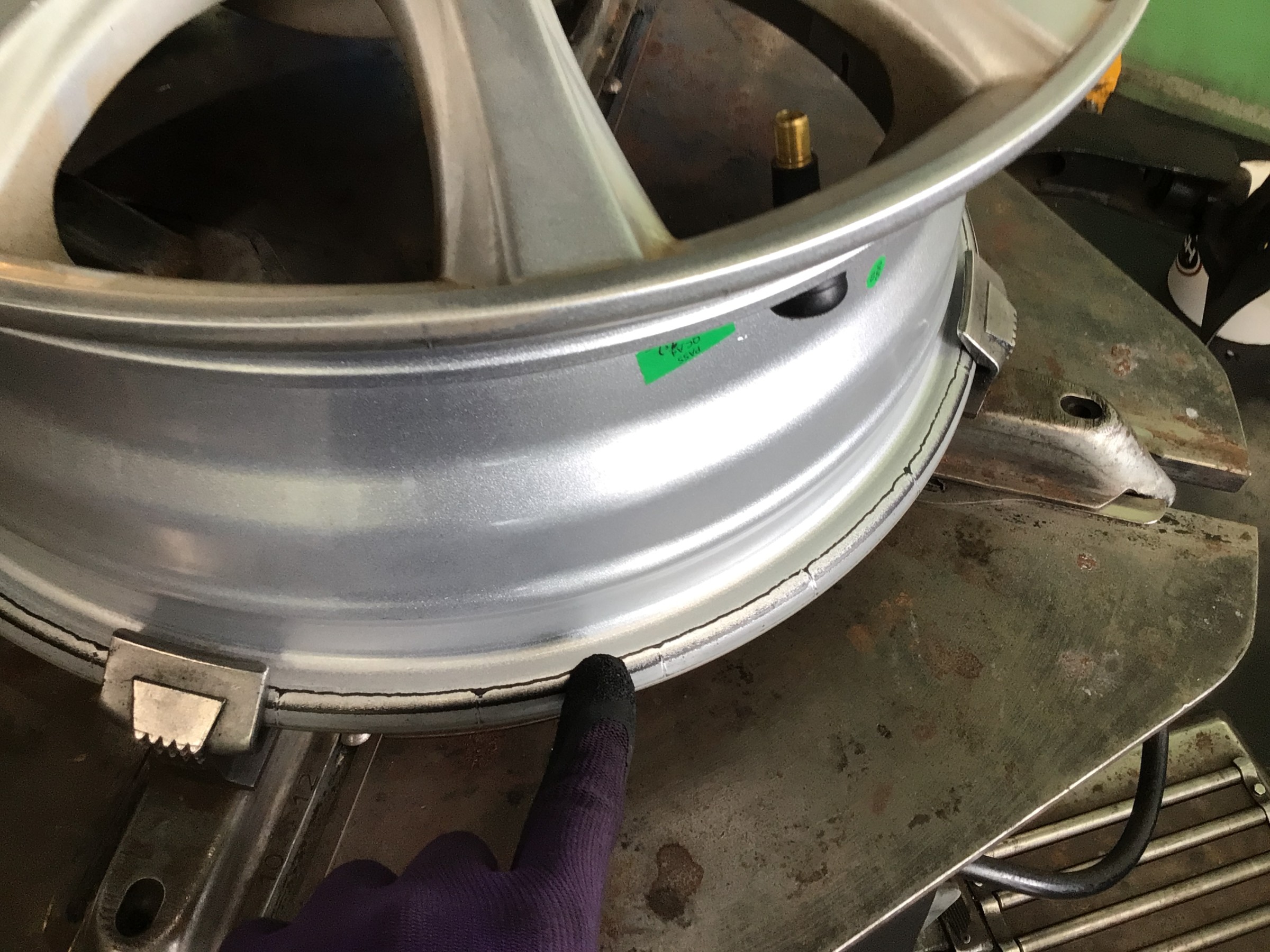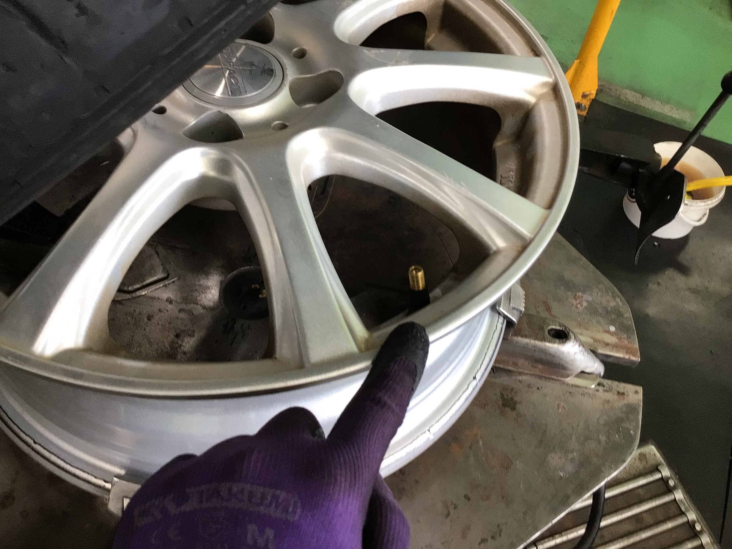 このカスが付着したままタイヤを組み付けますとエア漏れの原因となりますので、
