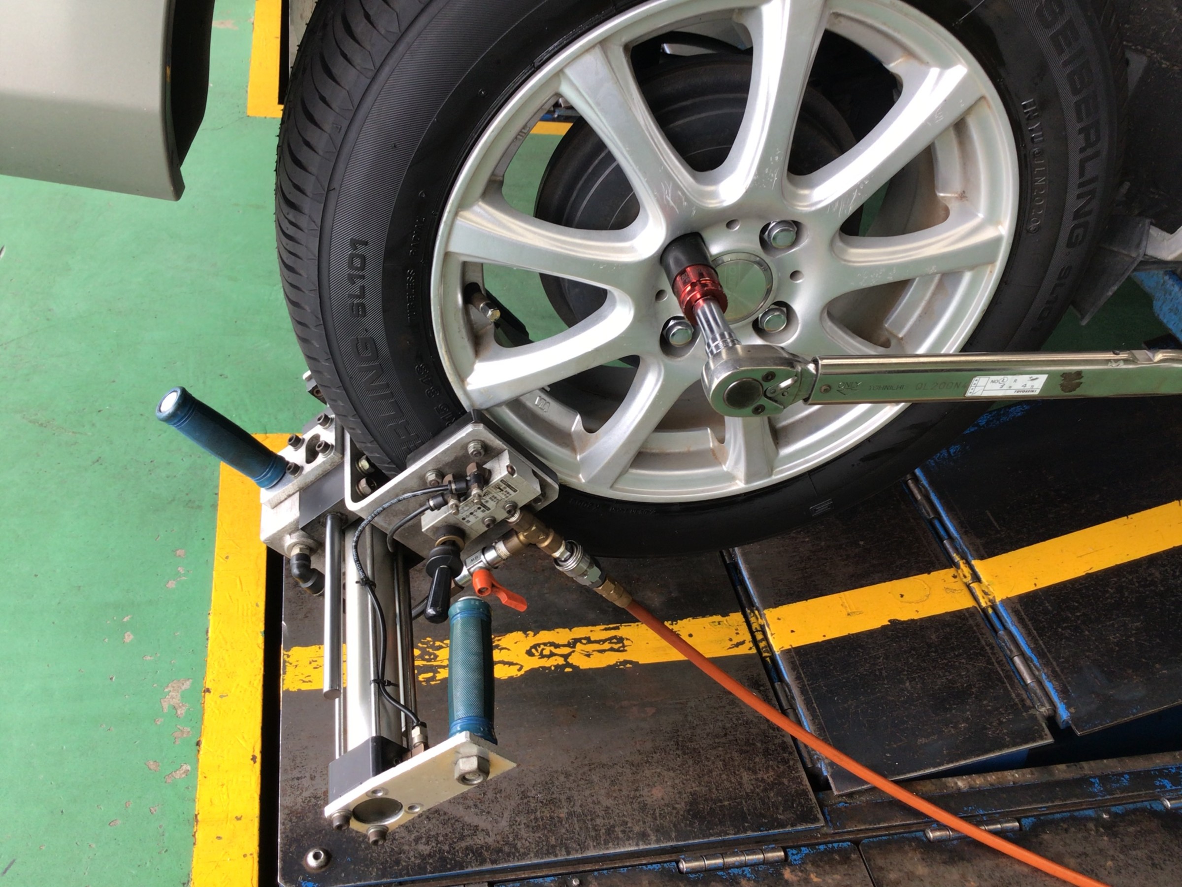 しかしこのマシンをタイヤに装着し、特殊な超微振動を与えながらナットを徐々に締め付けていきますと、
