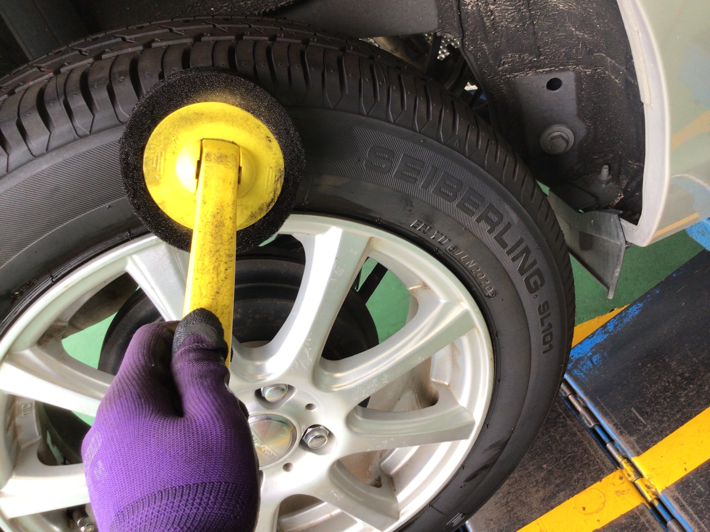 最終仕上げとして、ホイールを清掃しタイヤワックスを塗布して作業終了となります。