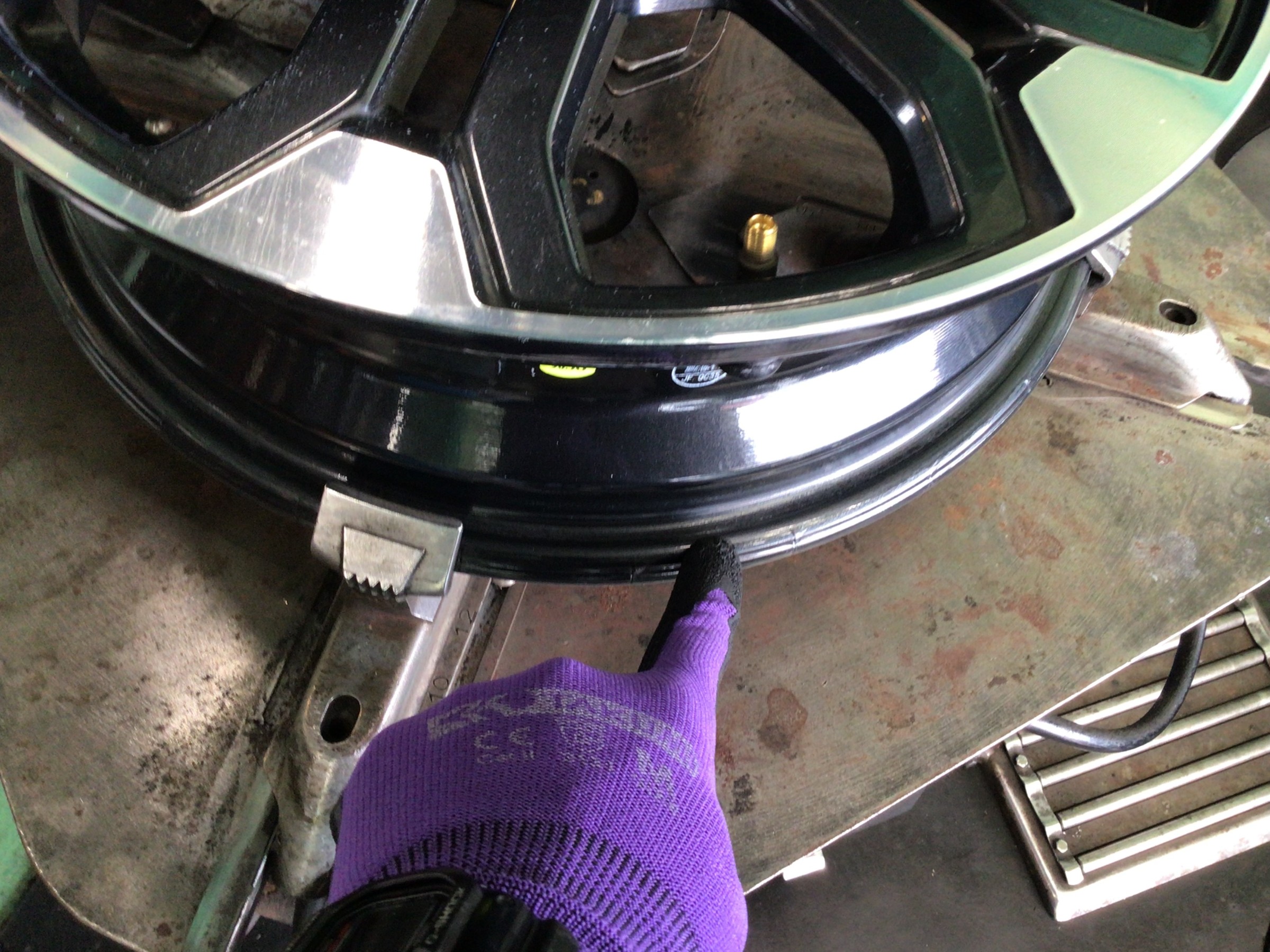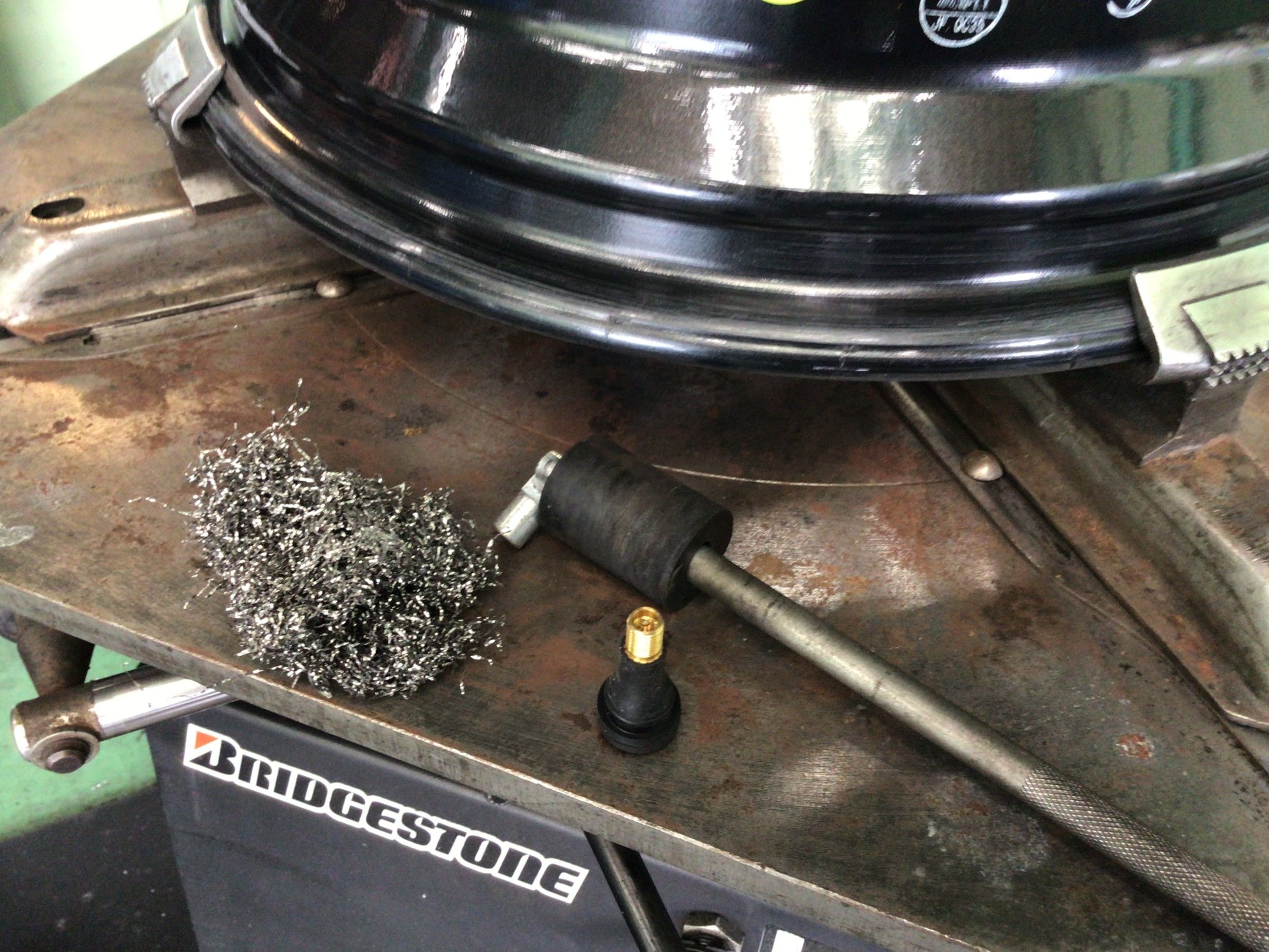 このカスが付着したままタイヤを組み付けますとエア漏れの原因となりますので、