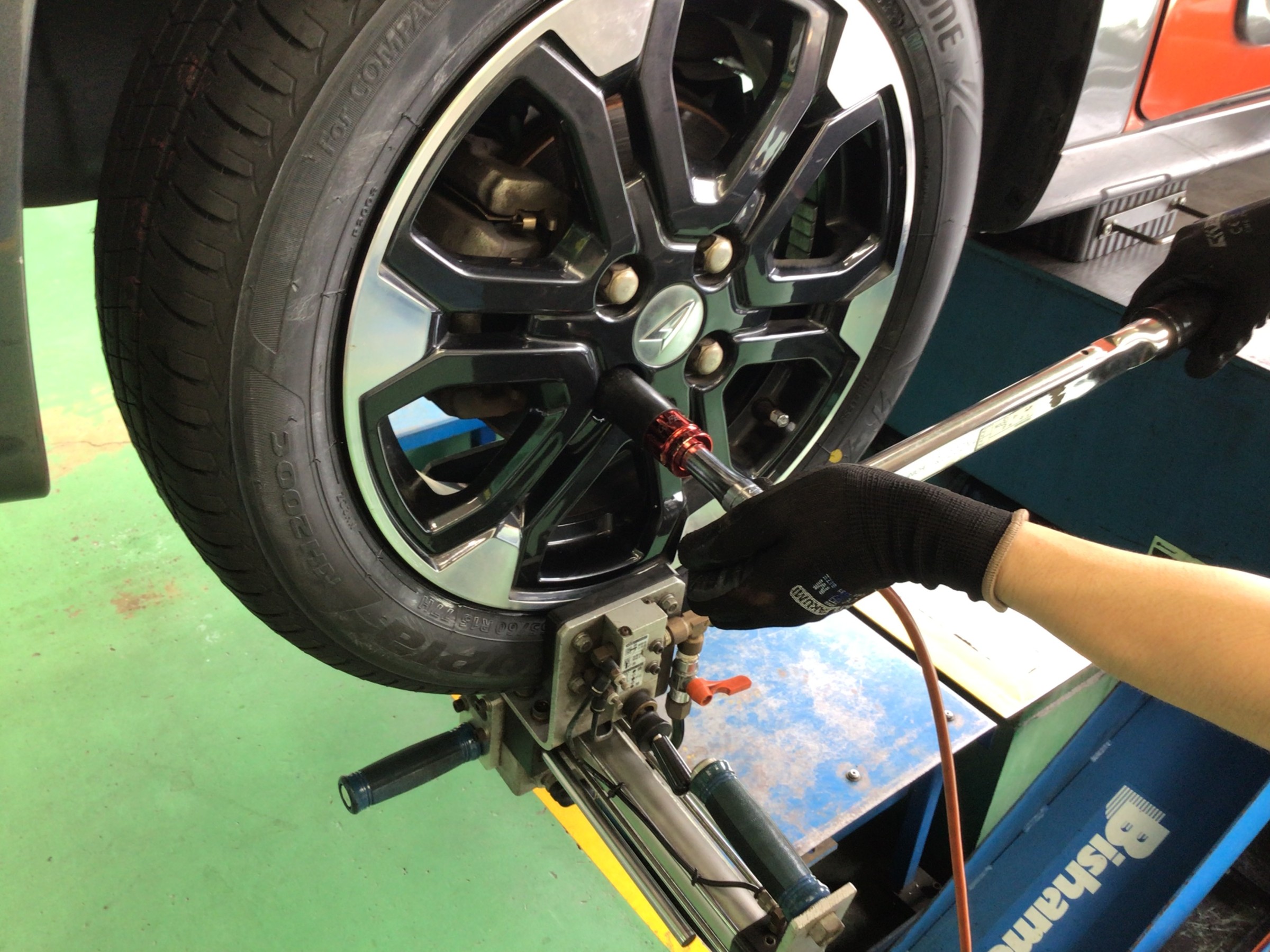 交換清掃後はタイヤを組み付けていきます。