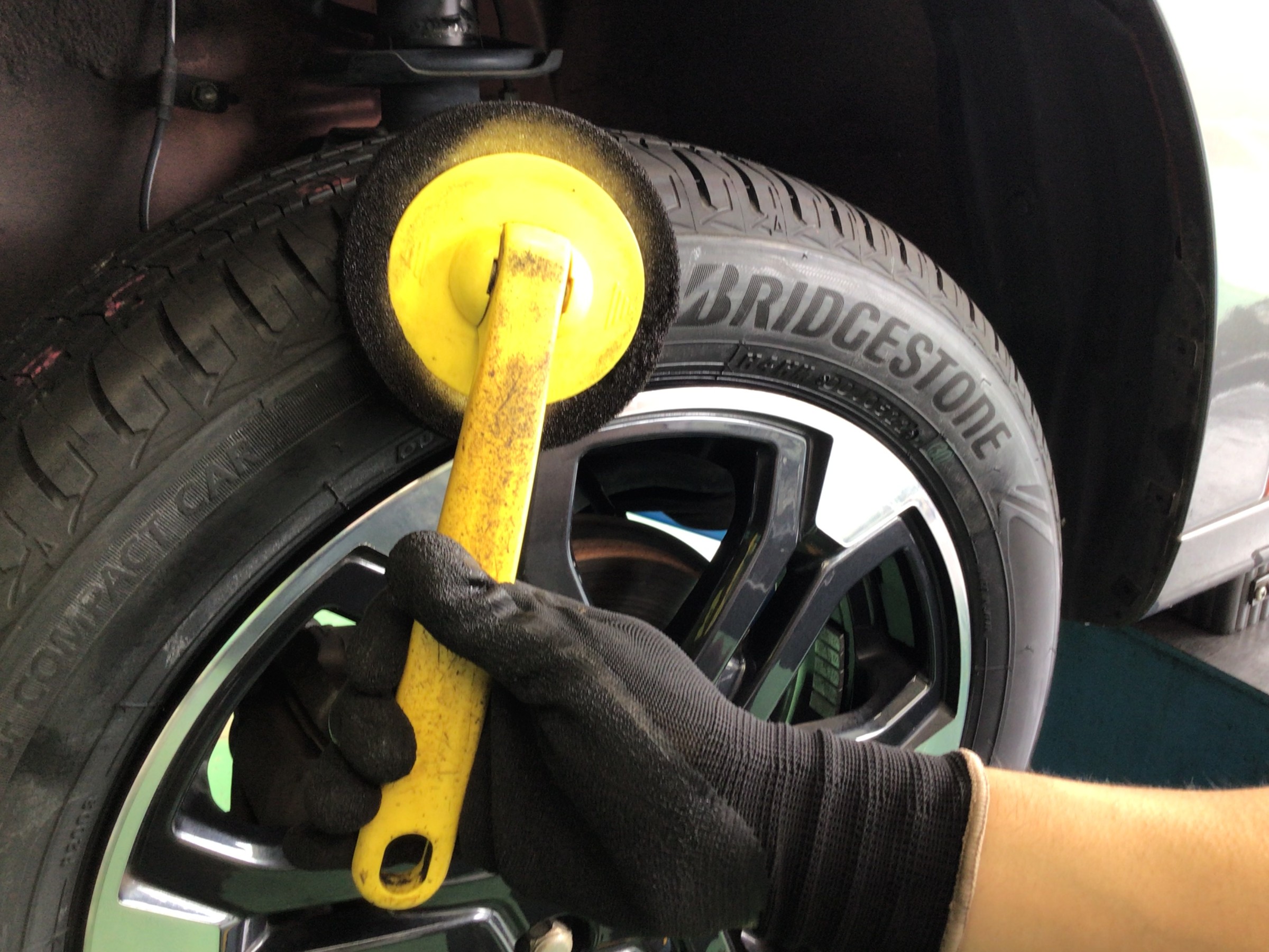 最終仕上げとして、ホイールを清掃しタイヤワックスを塗布して作業終了となります。