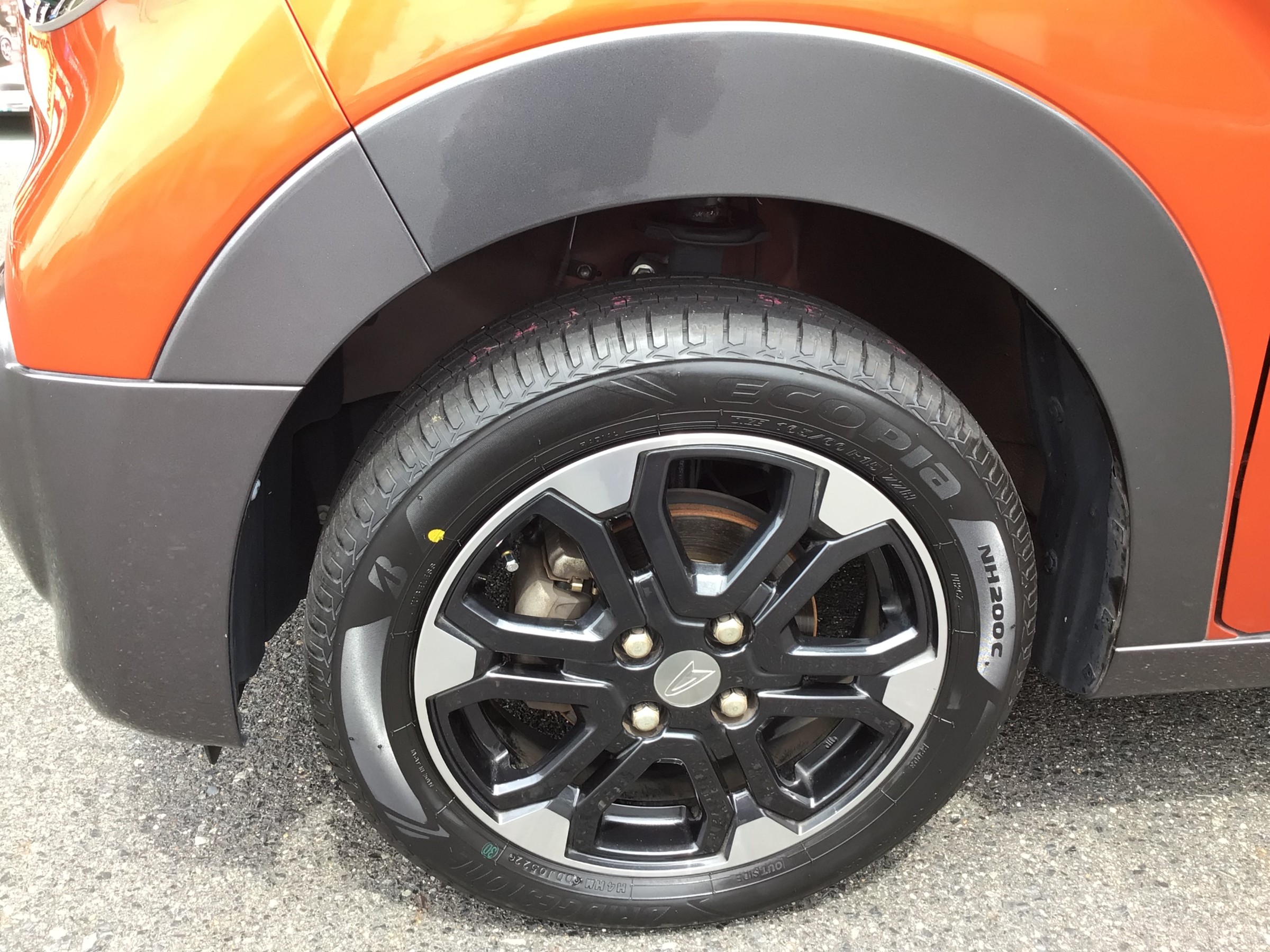 タイヤの銘柄はブリヂストン エコピア NH200Cで、サイズは165/60R15です。
