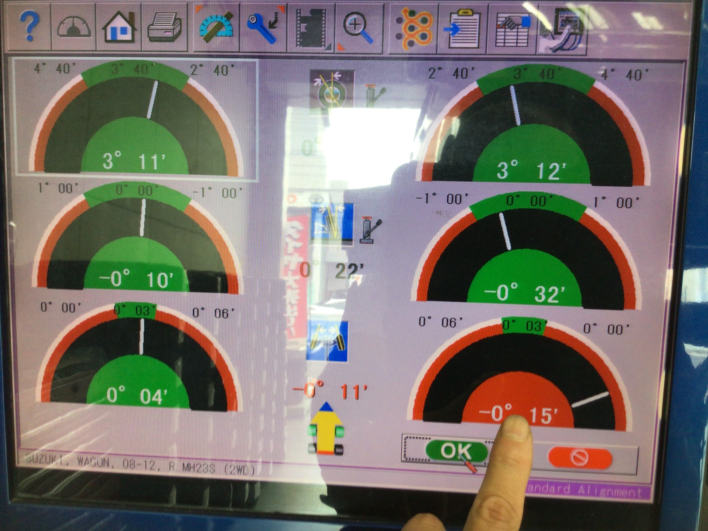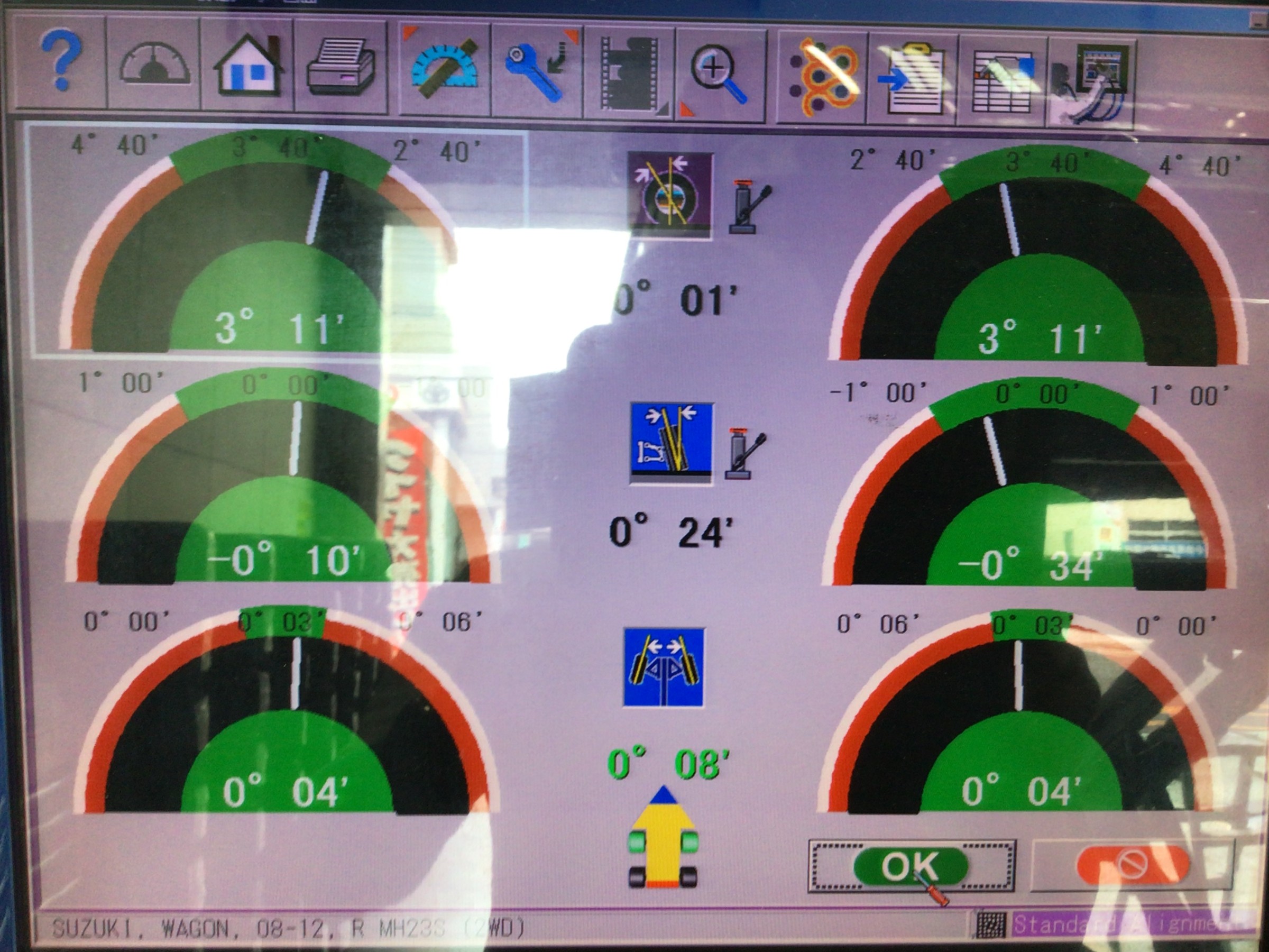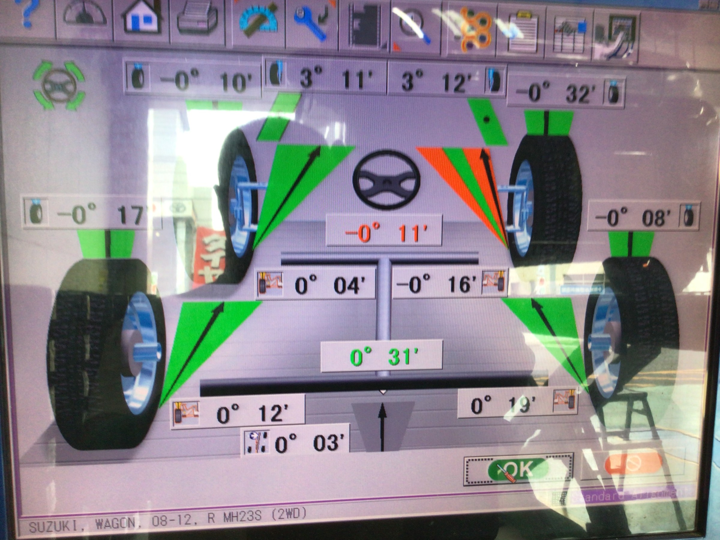 このお車は前輪左右トー調整のみの合計2カ所調整車です。(軽自動車はほぼこのパターンです)