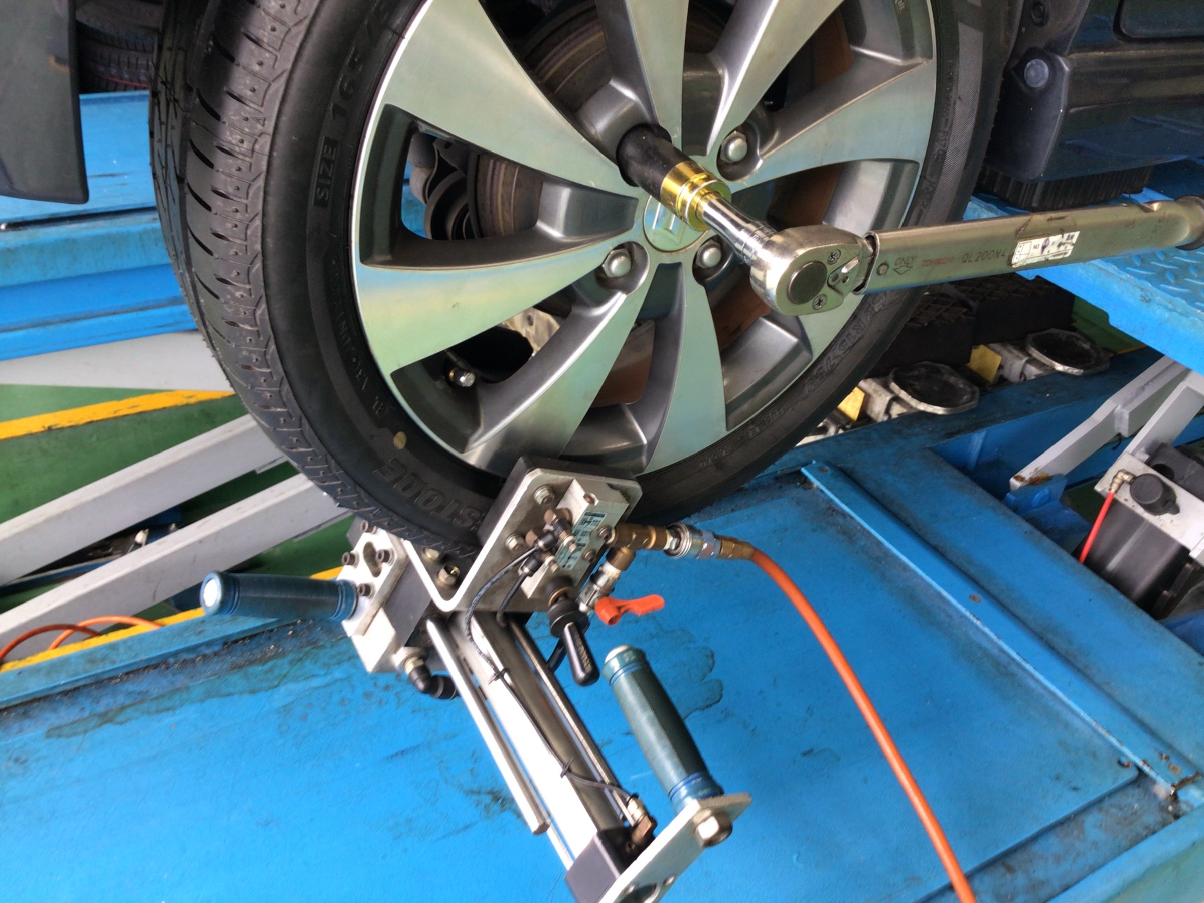 しかしこのマシンをタイヤに装着し、特殊な超微振動を与えながらナットを徐々に締め付けていきますと、