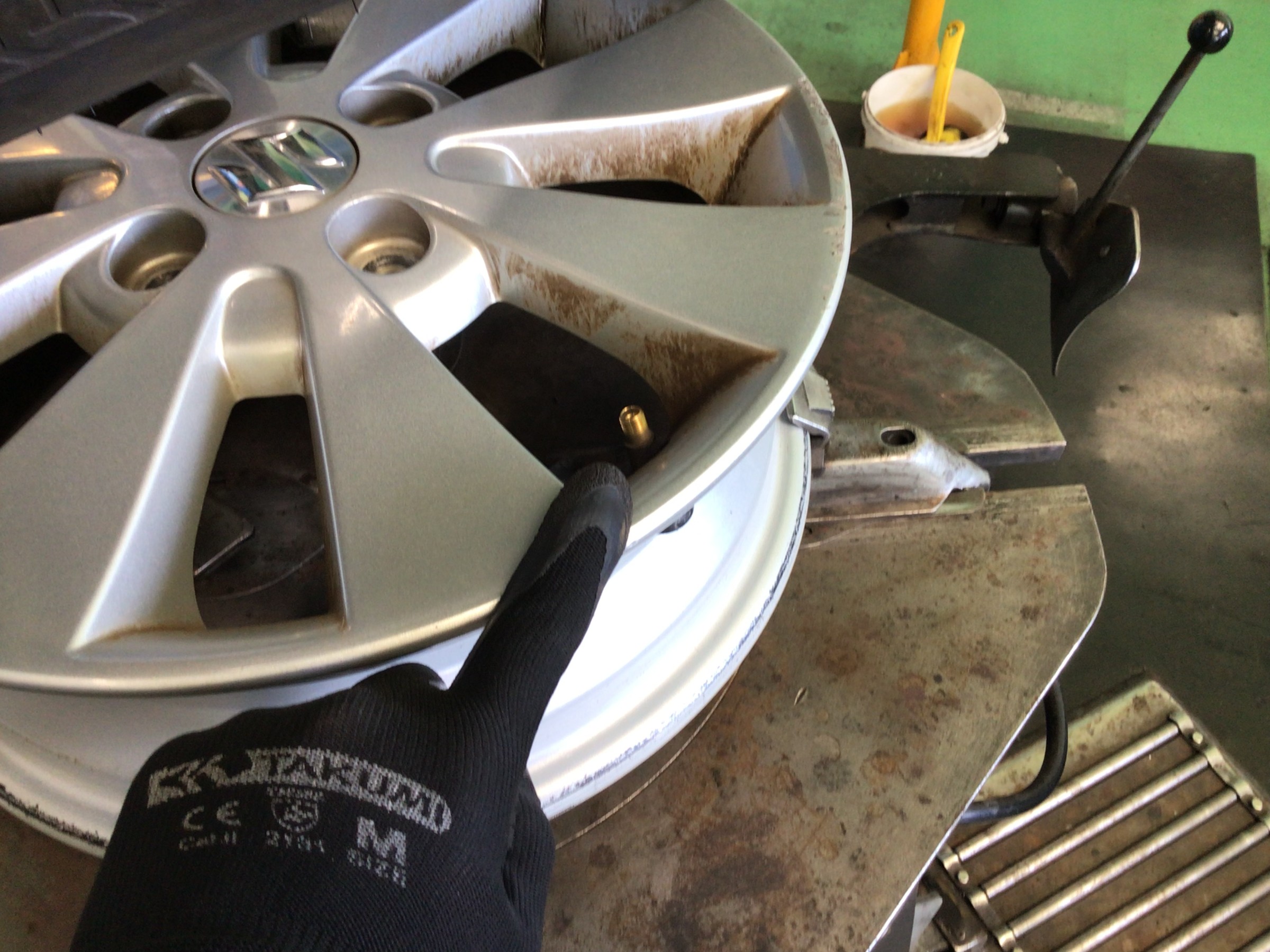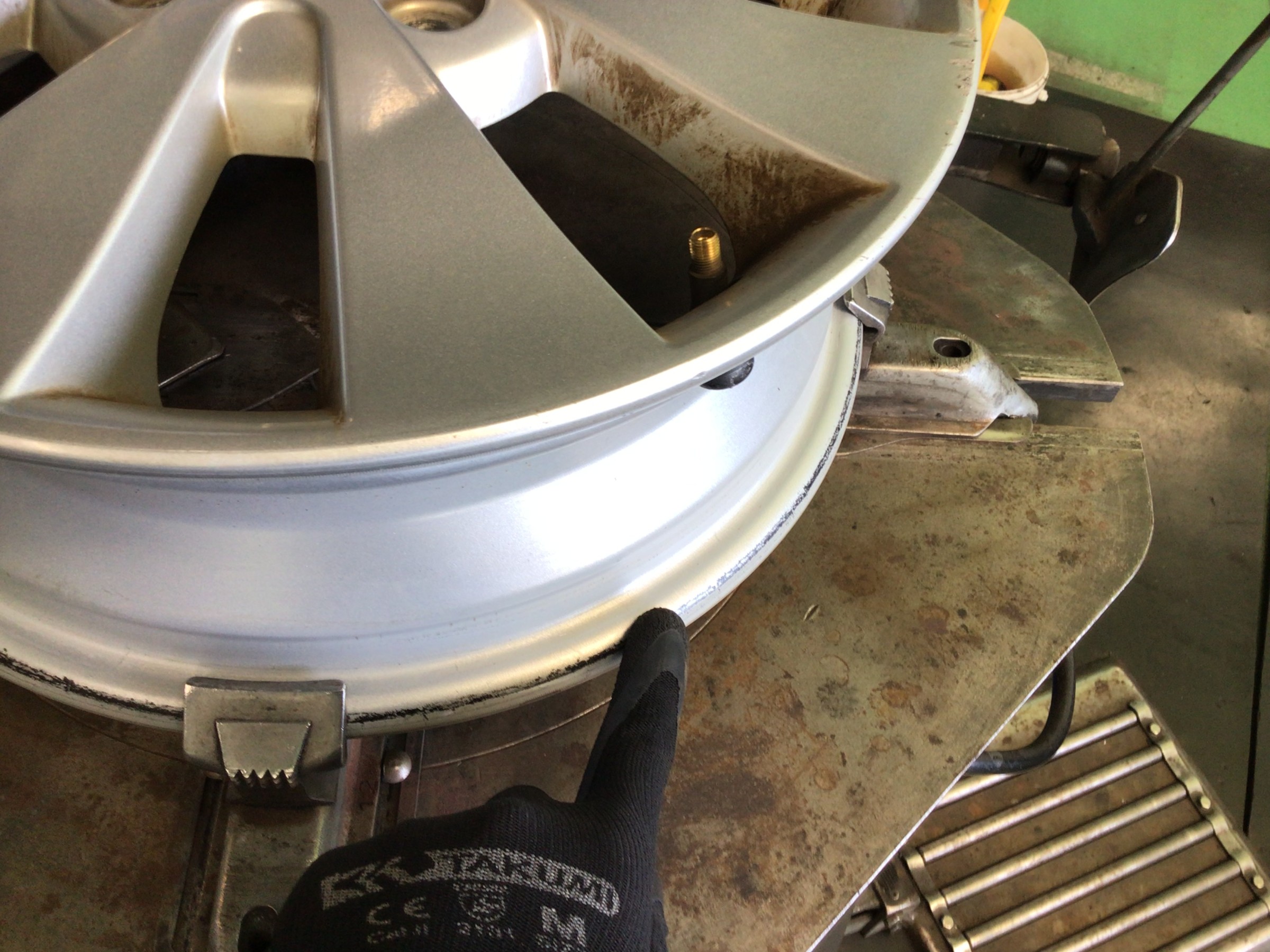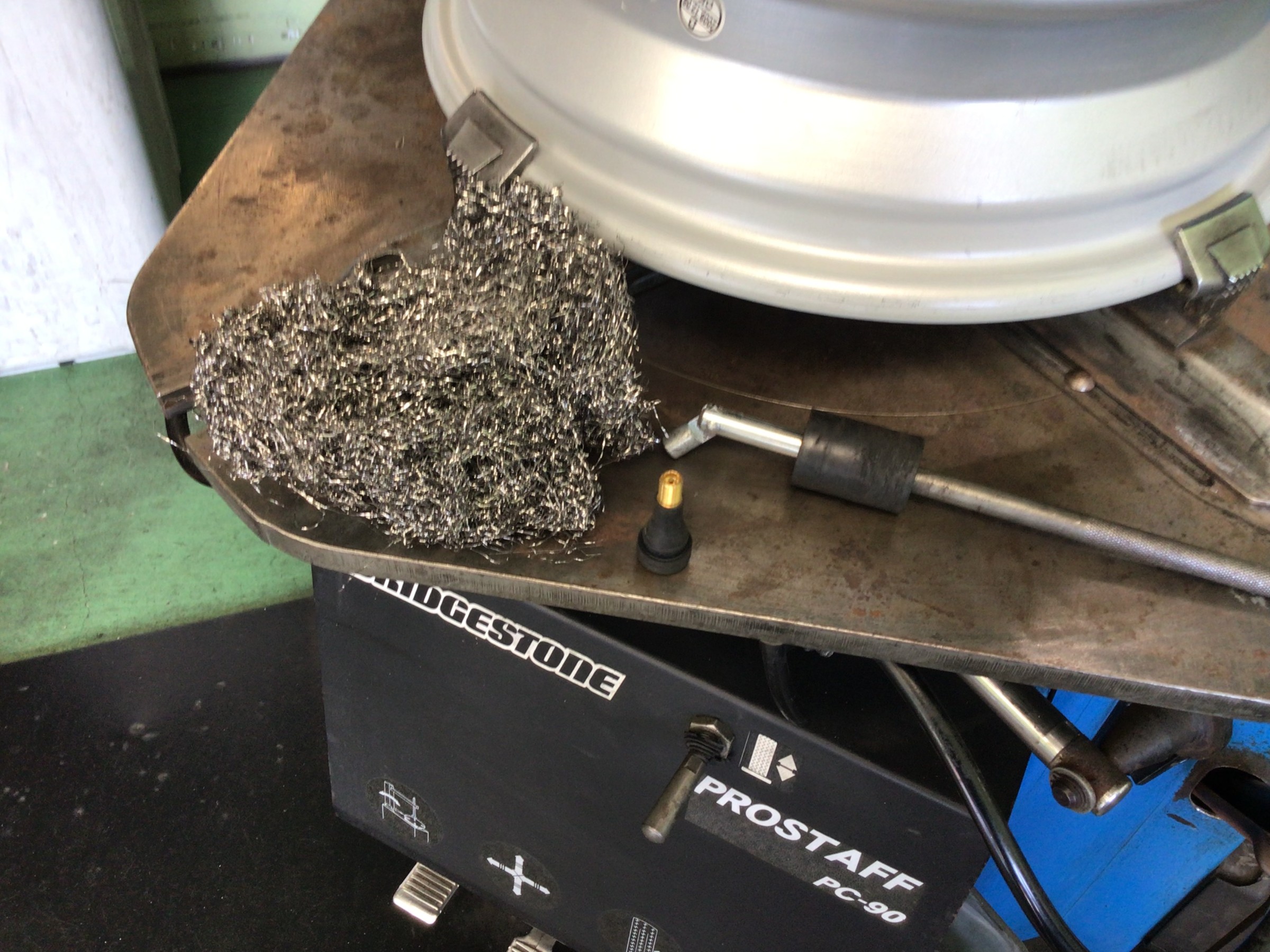 このカスが付着したままタイヤを組み付けますとエア漏れの原因となりますので、