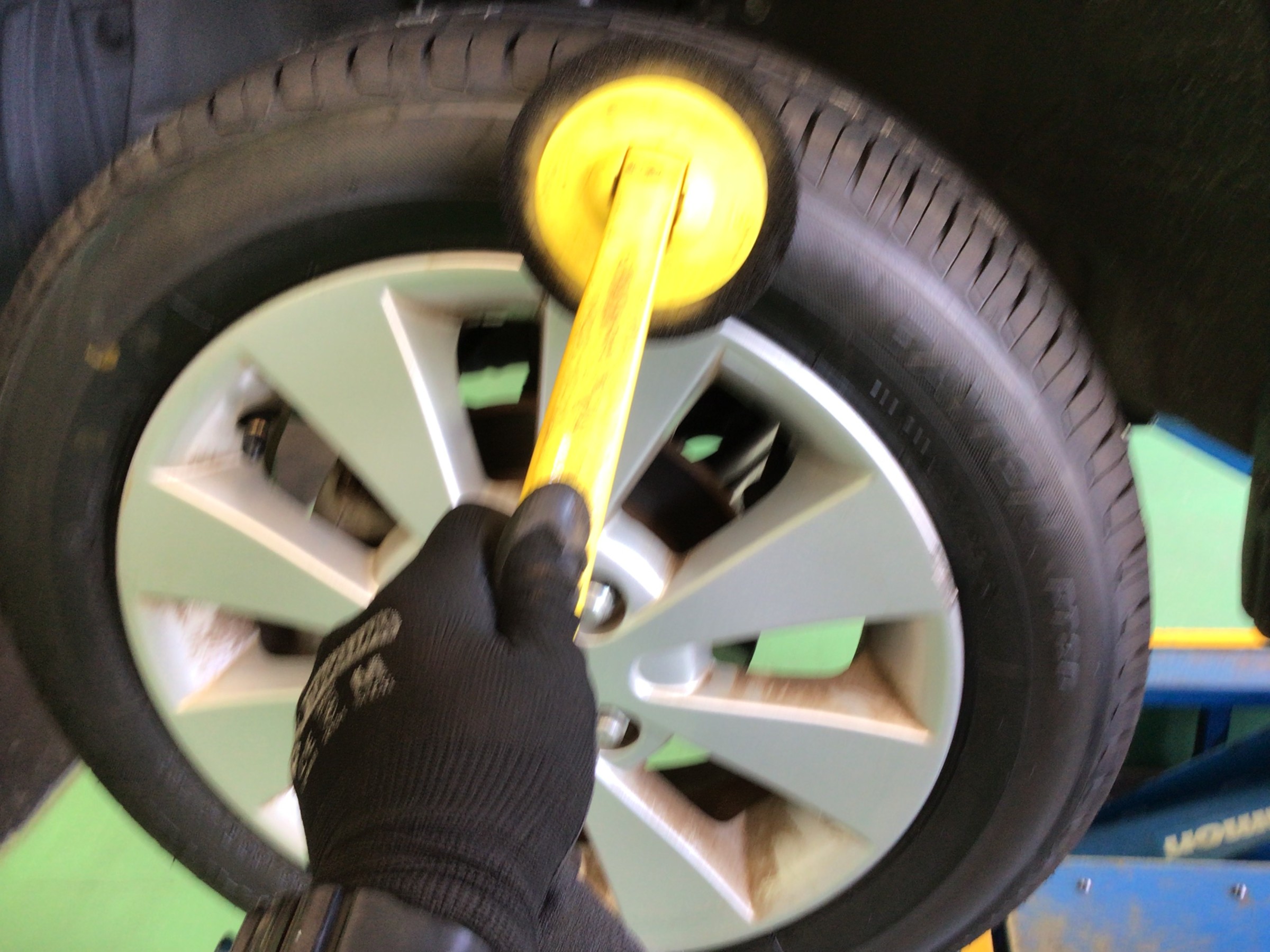 最終仕上げとして、ホイールを清掃しタイヤワックスを塗布してタイヤ交換作業終了となります。