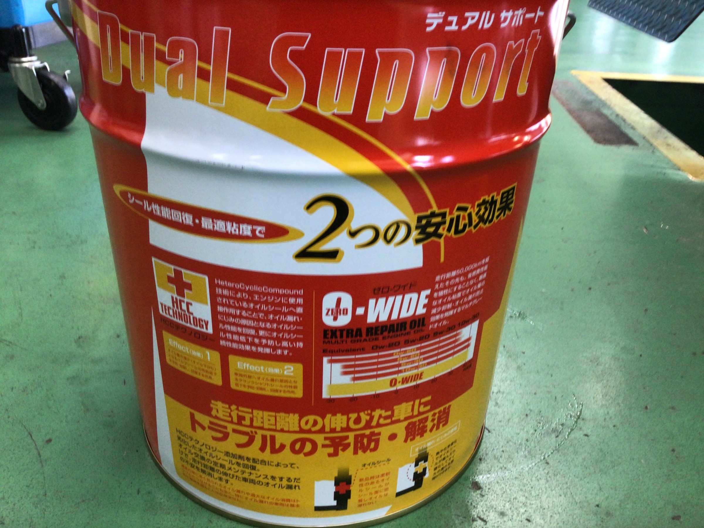 使用オイルはデュアルサポートで、粘度は-WIDEです。0W-20~10W-30までカバーできる