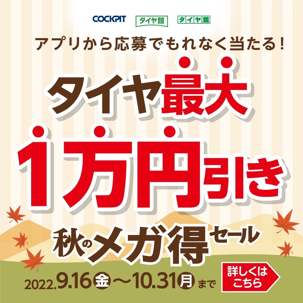 ただいま当店では10月31日(月)まで秋のメガ得セールを開催中です!