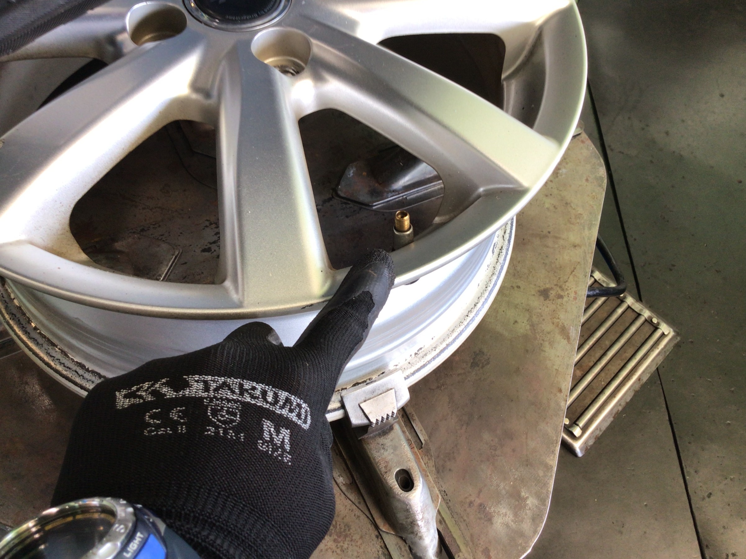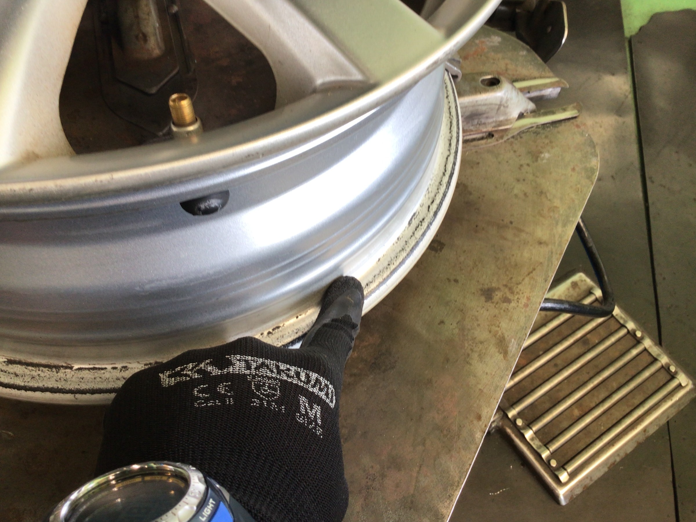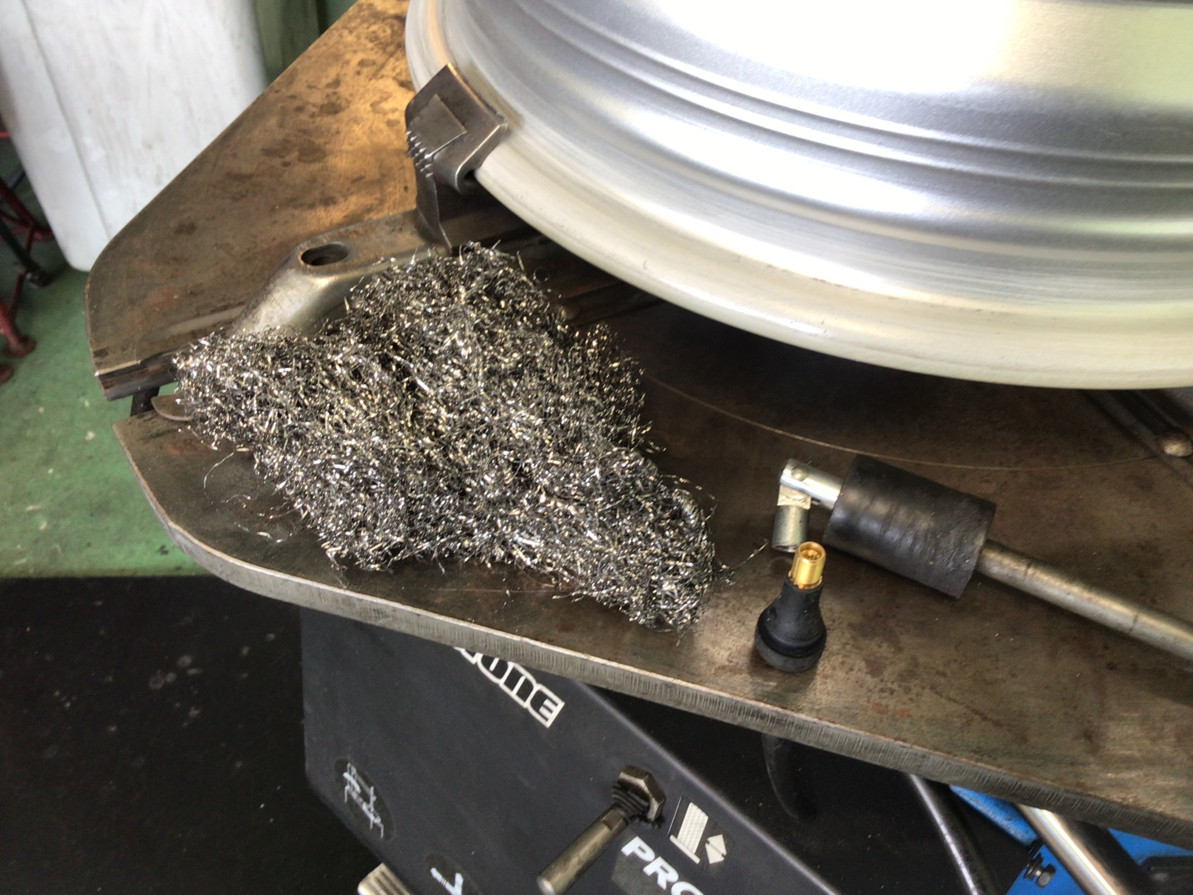 このカスが付着したままタイヤを組み付けますとエア漏れの原因となりますので、