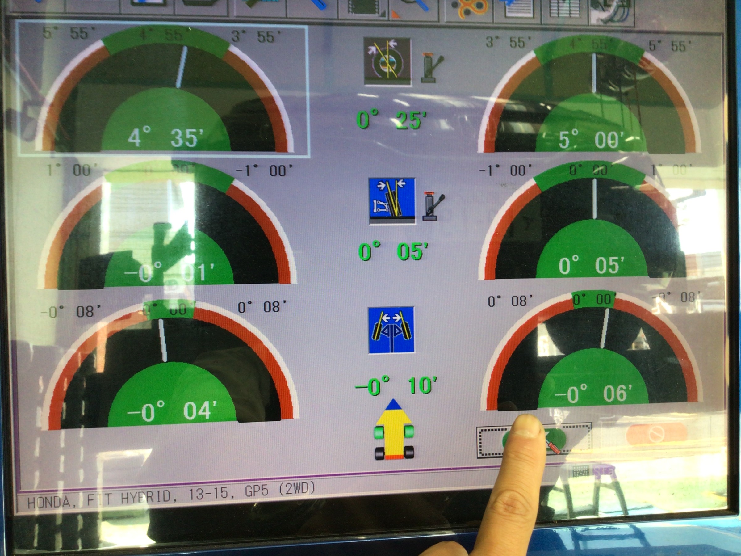 この型のお車は前輪のトー調整のみの合計2カ所調整車です。