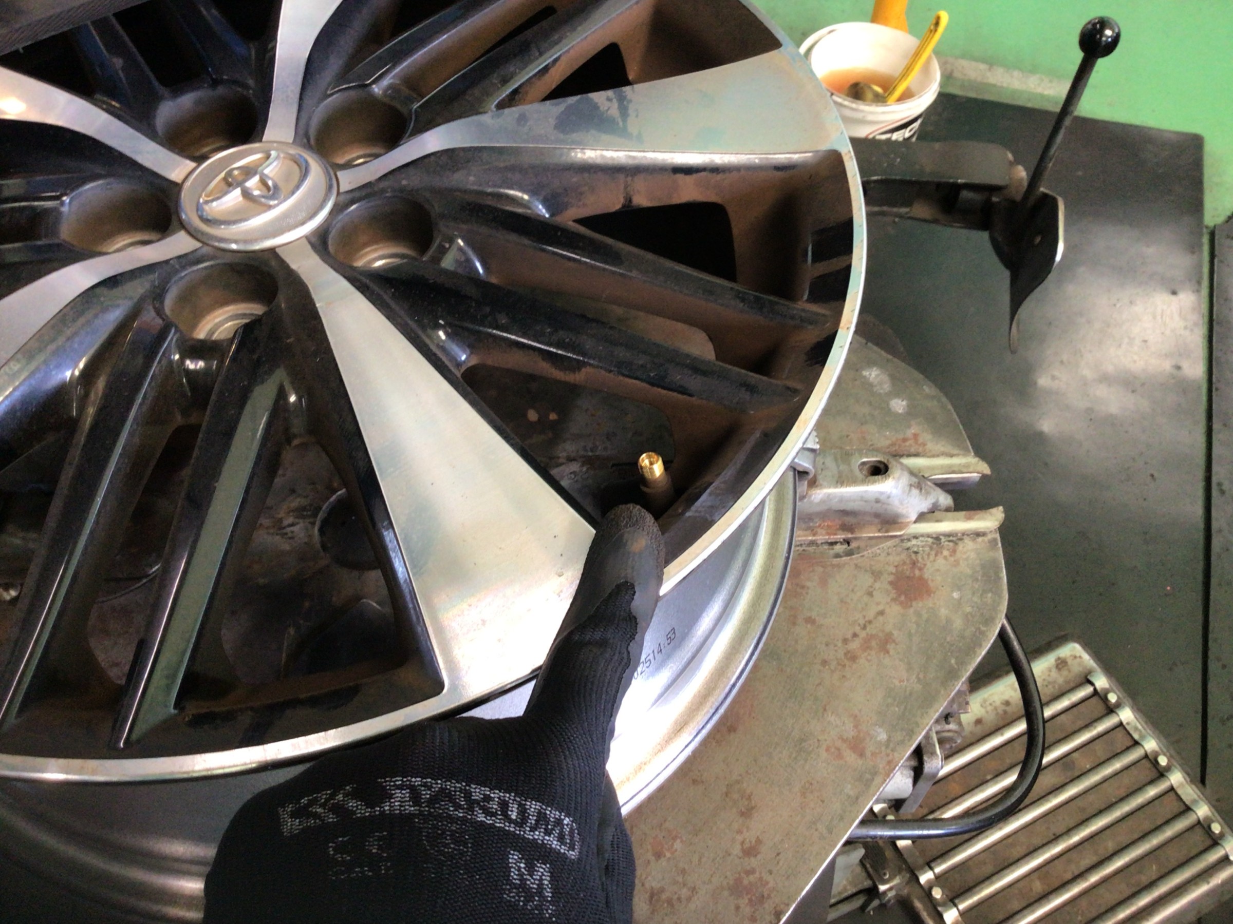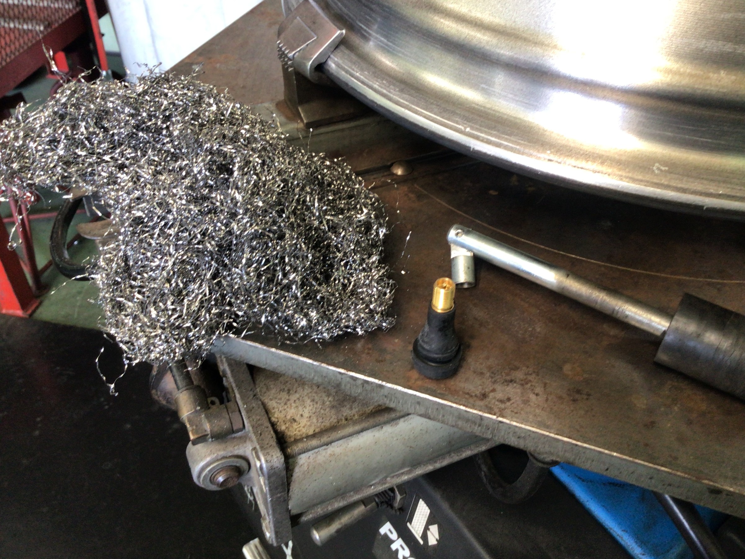 このカスが付着したままタイヤを組み付けますとエア漏れの原因となりますので、