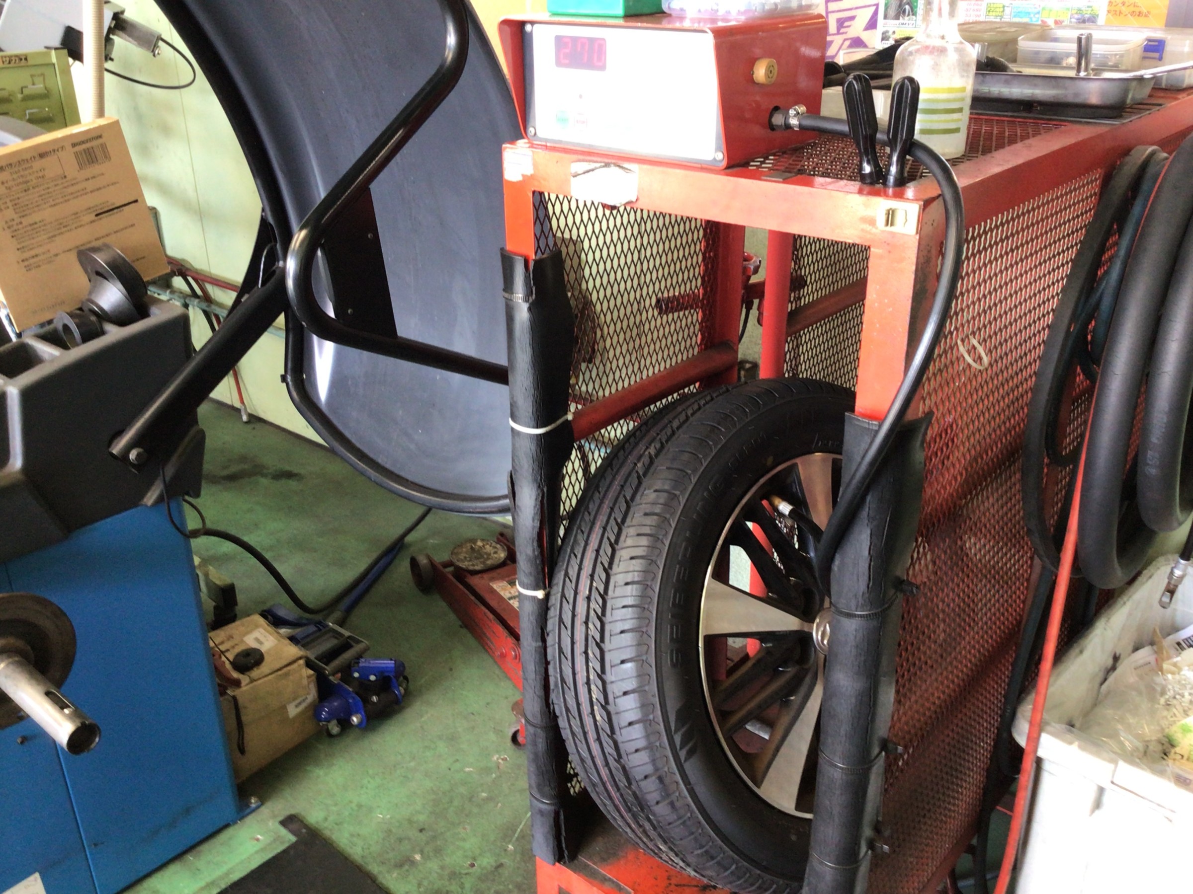 組付け後はエア充填作業ですが、充填作業は危険が伴います!