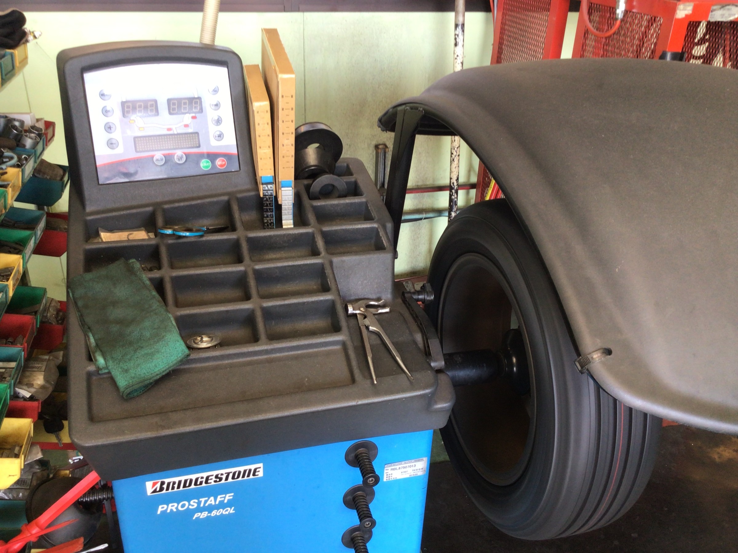 交換清掃後はタイヤを組み付けていきます。