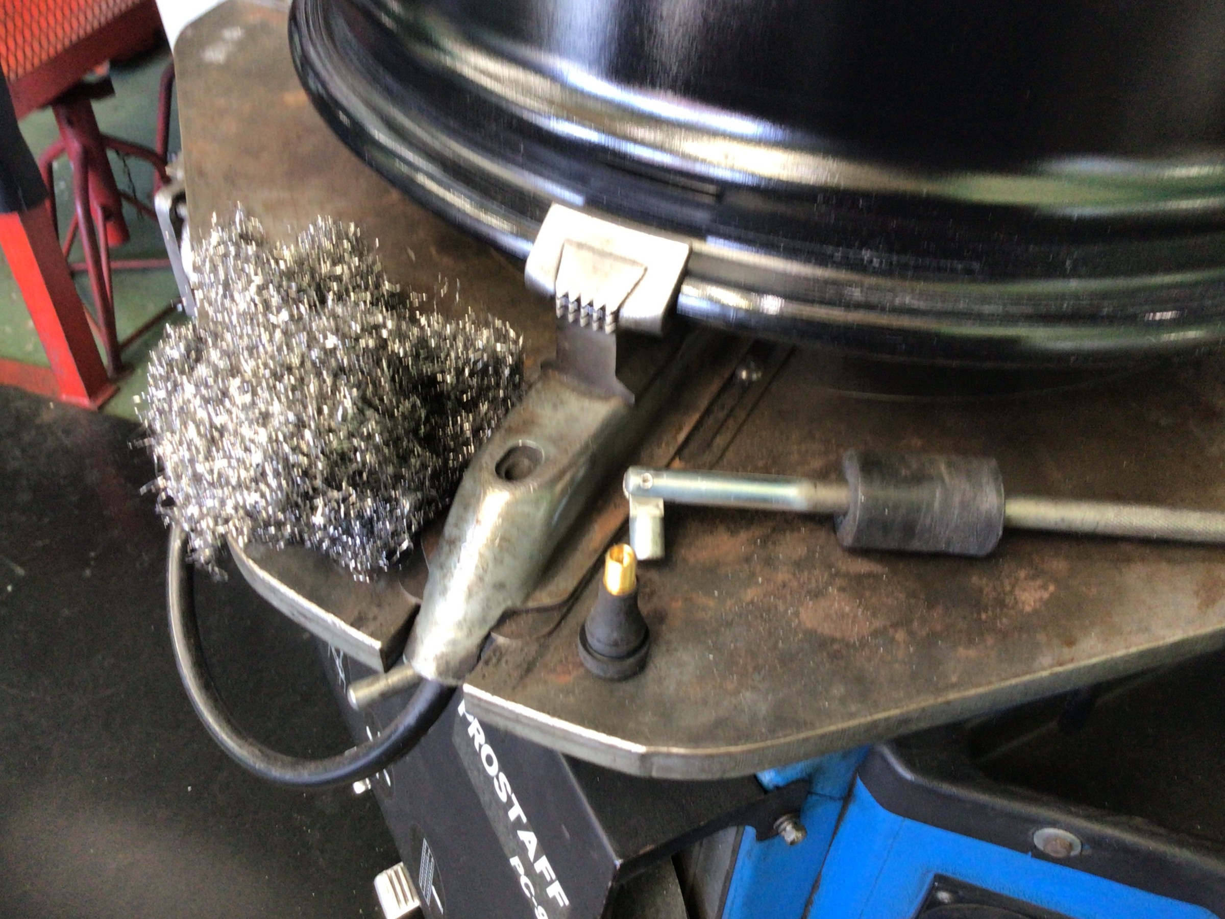 このカスが付着したままタイヤを組み付けますとエア漏れの原因となりますので、