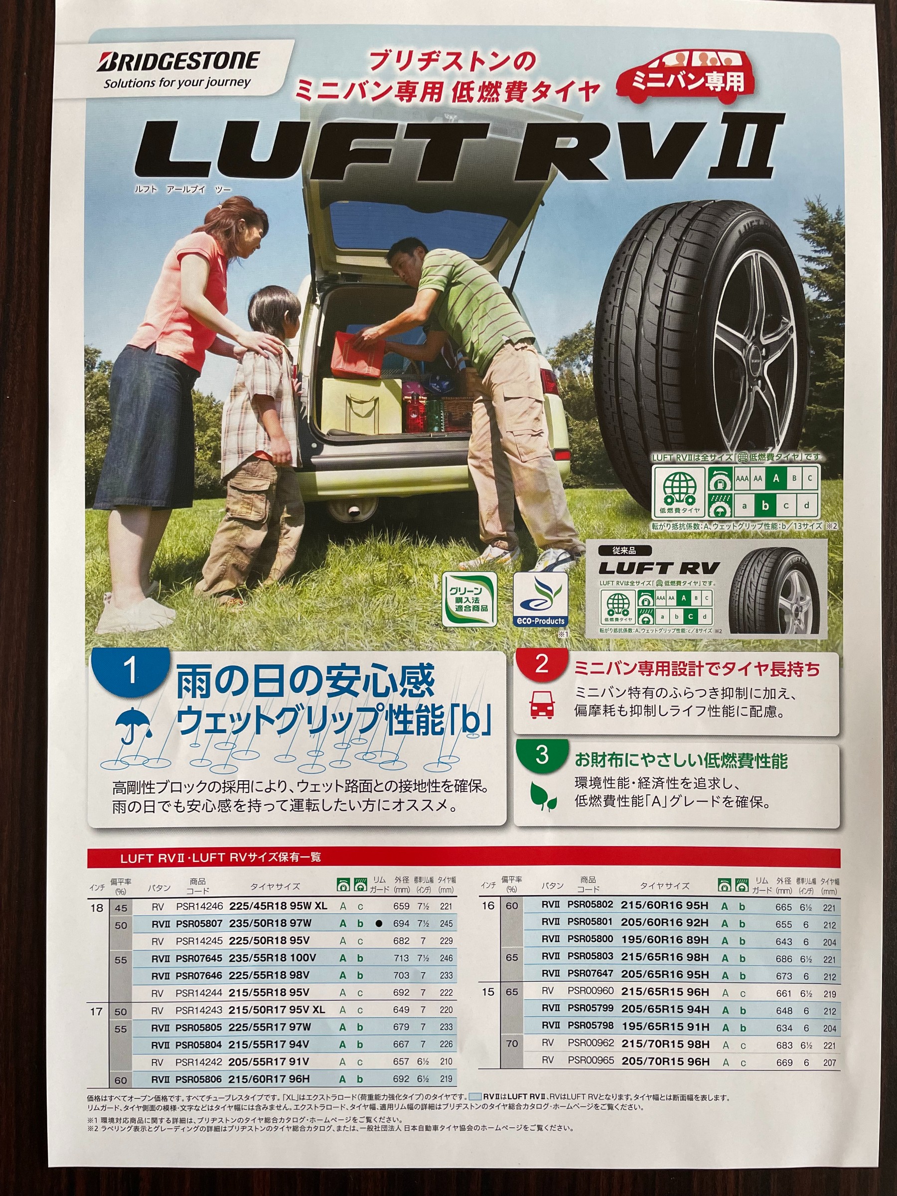 タイヤの銘柄はブリヂストン ルフトRVⅡで、サイズは215/55R17です。