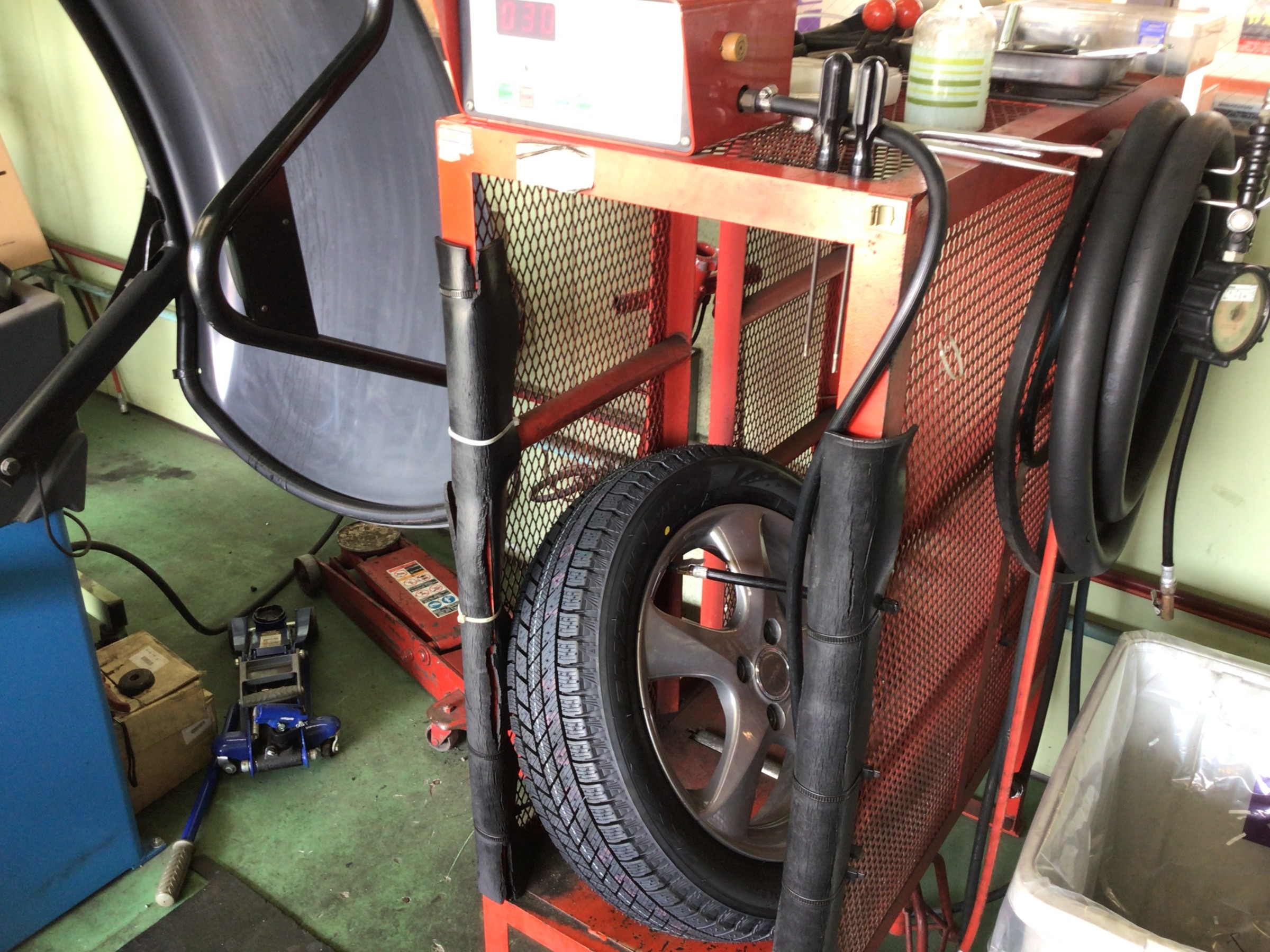 交換清掃後はタイヤを組み付けていきます。