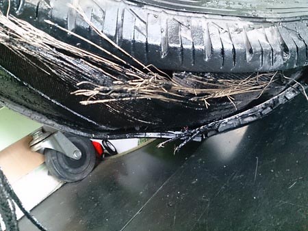 荷物が多すぎてのタイヤへの負荷が大きくなり、