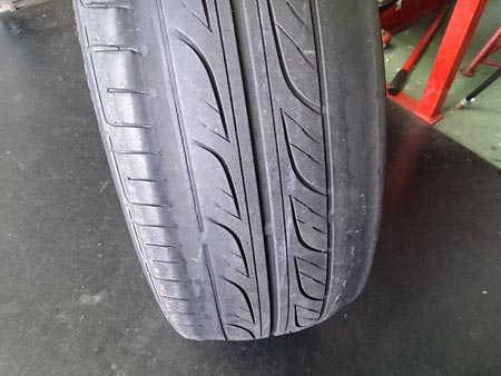 古いタイヤで負荷がかかり、