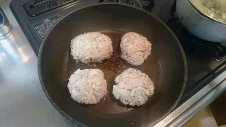 ミンチは使いません。薄切りの肉をこねてこねてこねまくり(笑)、