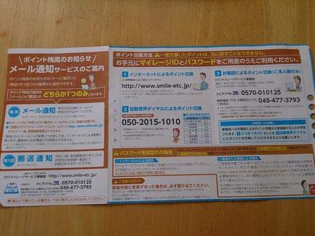 ETCマイレージサービスのポイント。