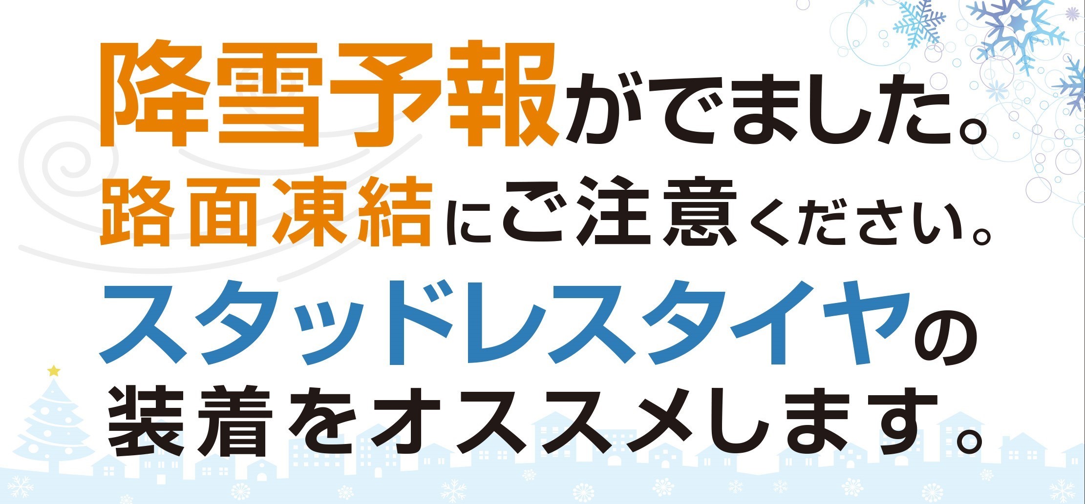 今後どうなるか判りませんが、雪、凍結対策としてスタッドレスタイヤの装着をおすすめします。