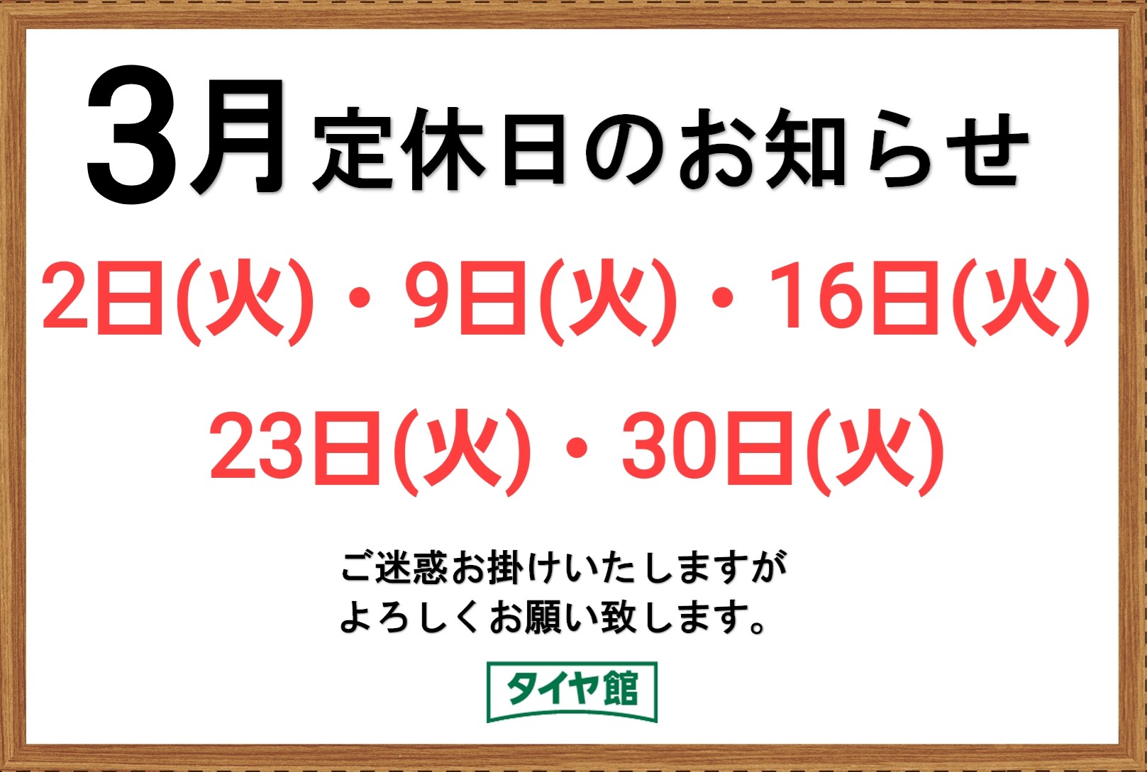 2021年3月定休日のお知らせ ポスト 2021年2月27日 2021年3月の定休日は下記の通りとなります。 2日(火) 9日(火) 16日(火) 23日(火) 30日(火) ご迷惑をお掛けいたしますが よろしくお願い致します。 カテゴリ:お知らせ