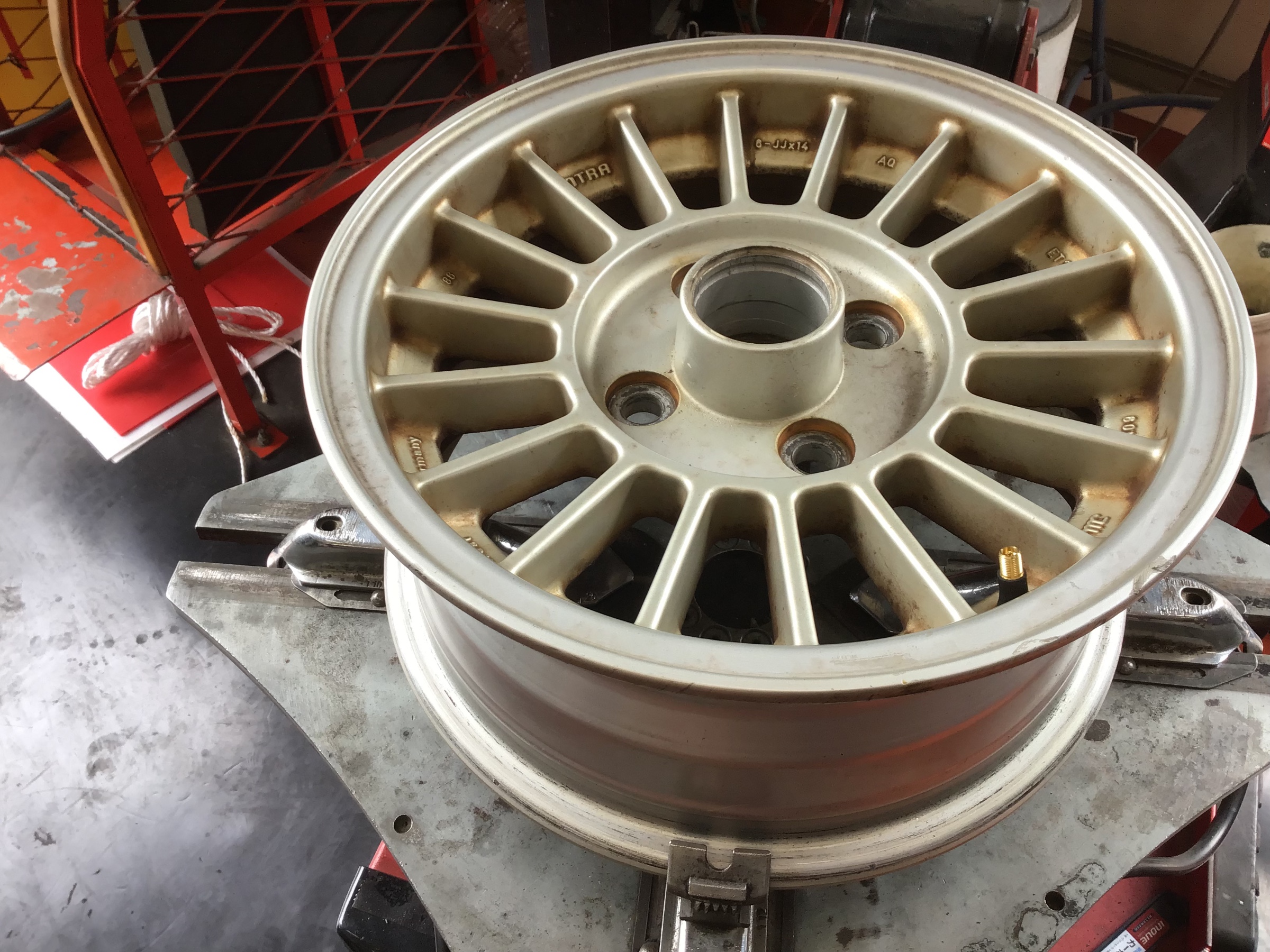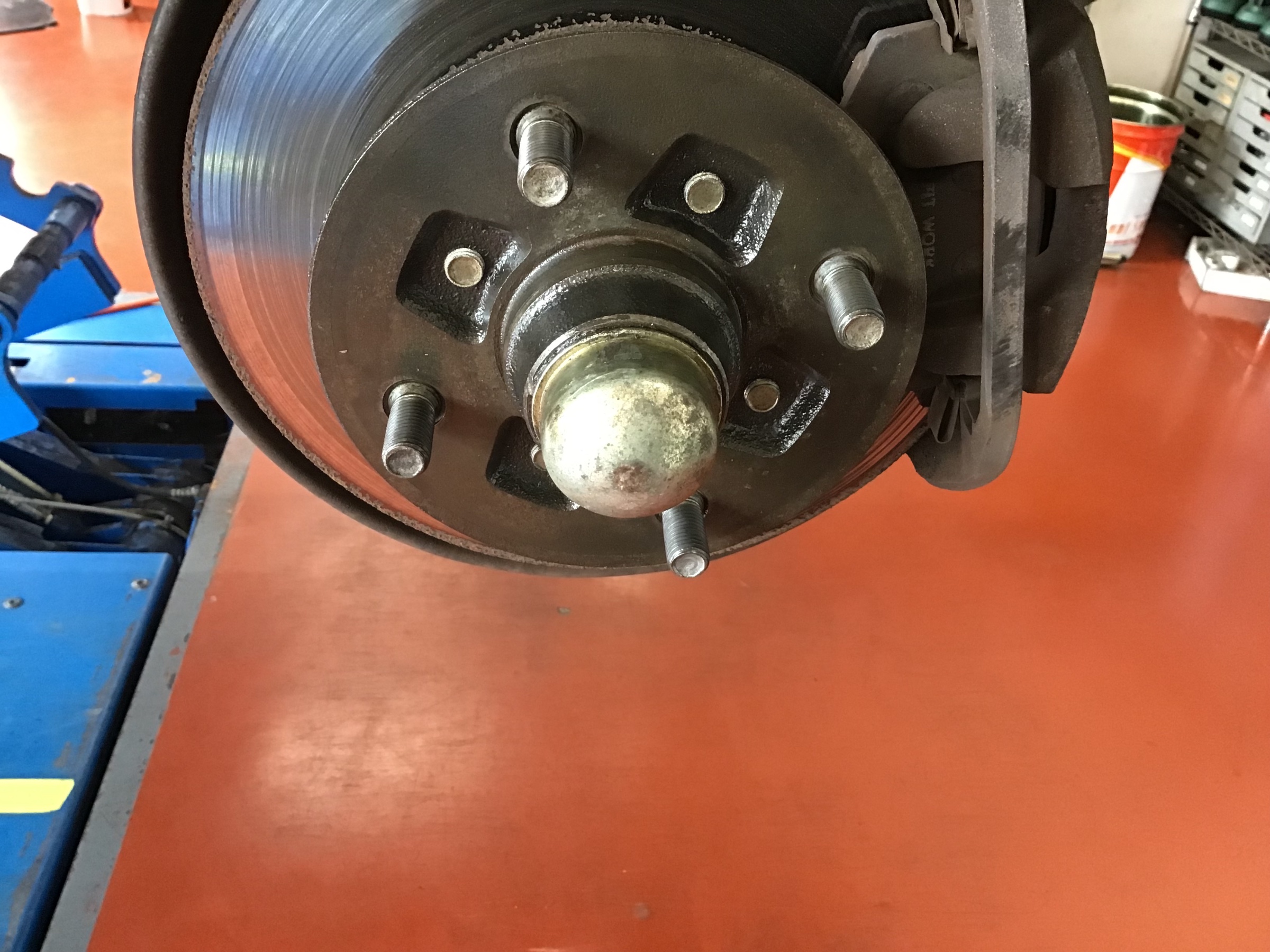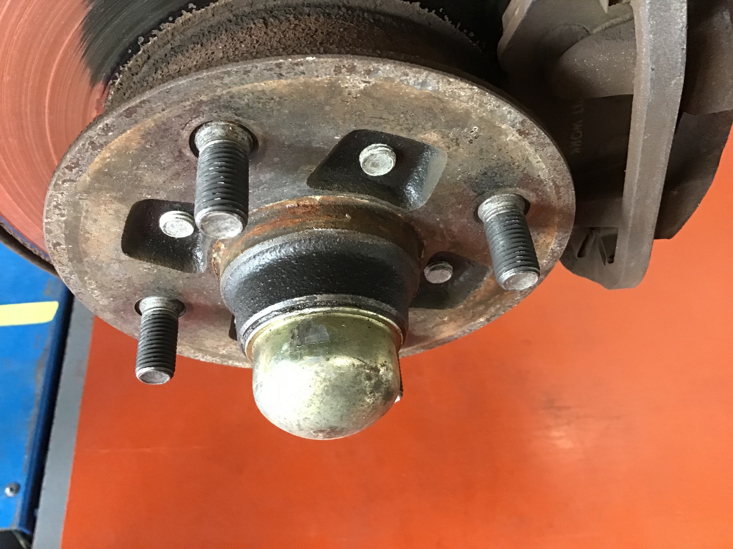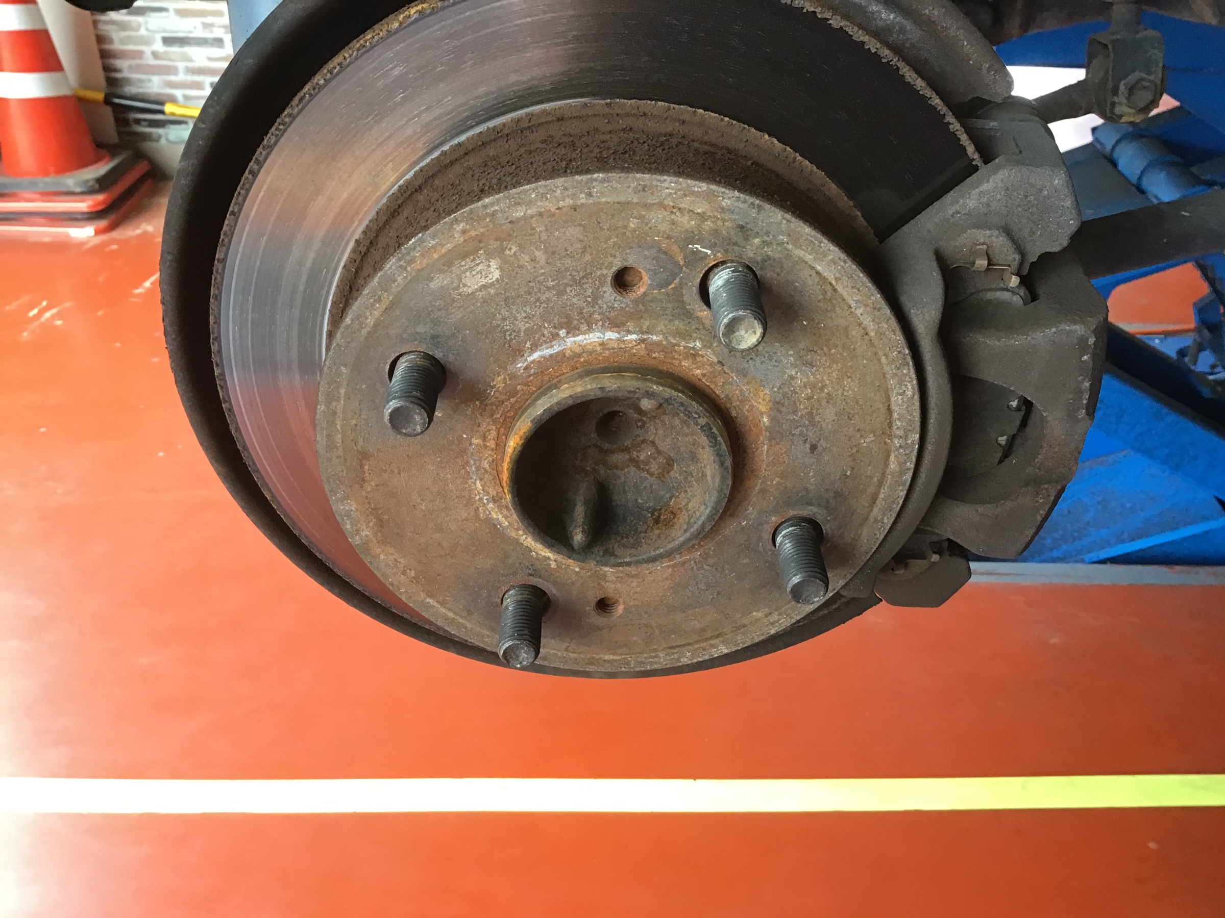 装着前にお車のハブ部分の錆を落としていきます。