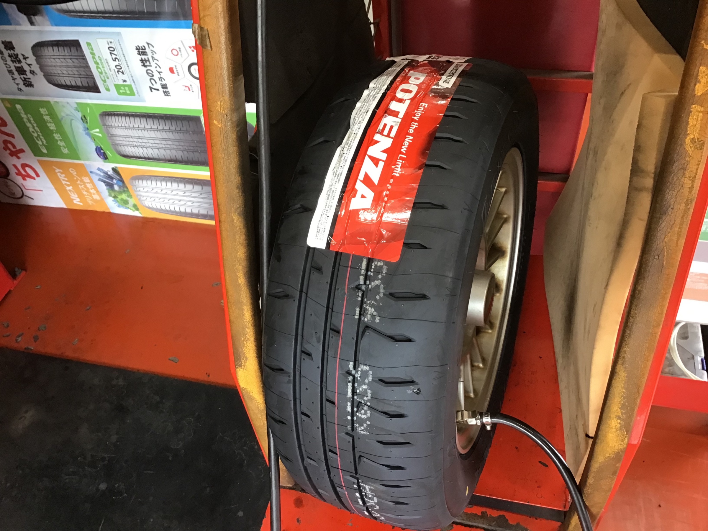 タイヤをお車に装着します!!! POTENZAの文字もカッコイイですね!