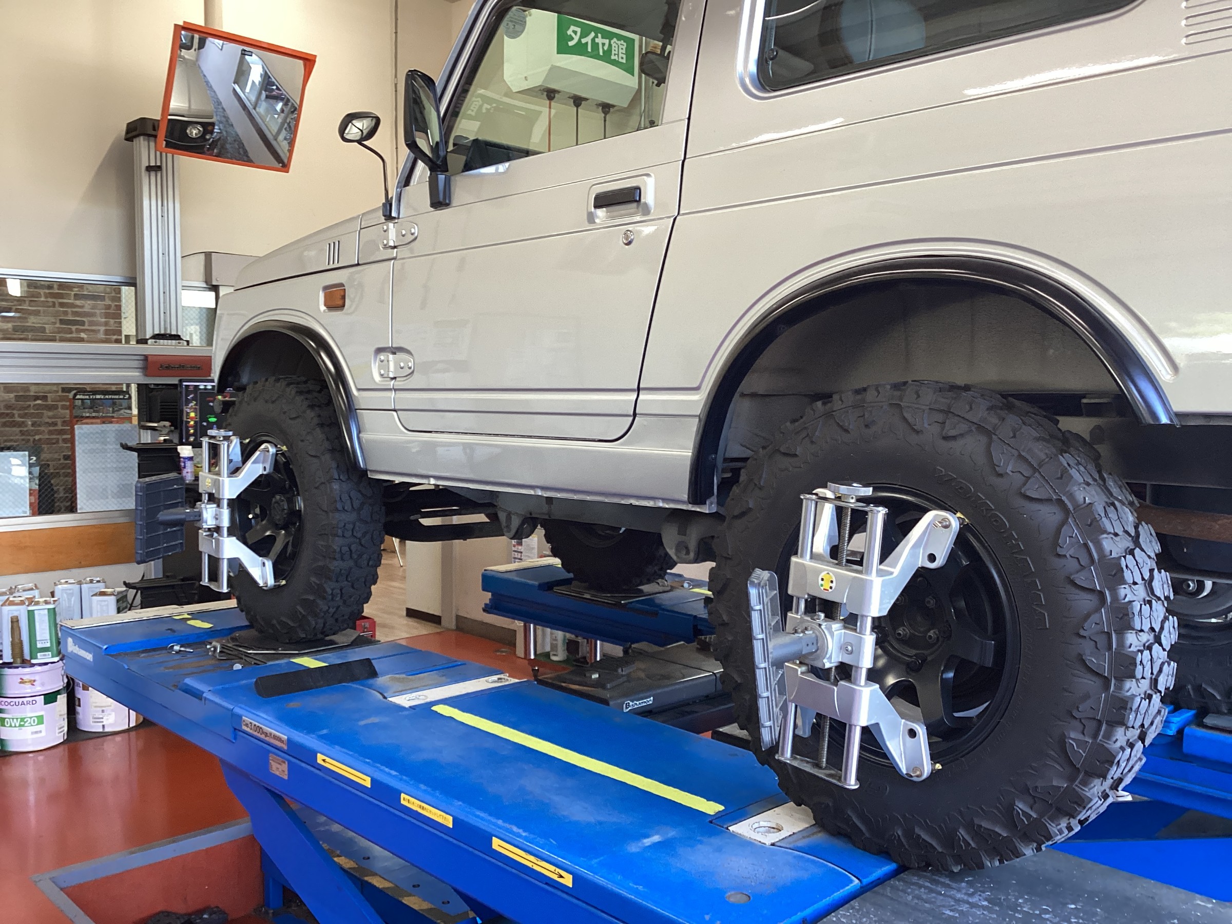 スズキ ジムニー アライメント作業 ポスト 2025年5月4日 本日ご紹介の作業は スズキ ジムニー アライメント作業です 気持ちの良い走りにアライメント作業は欠かせません ジムニーのアライメント調整も タイヤ館葉山店にお任せください!