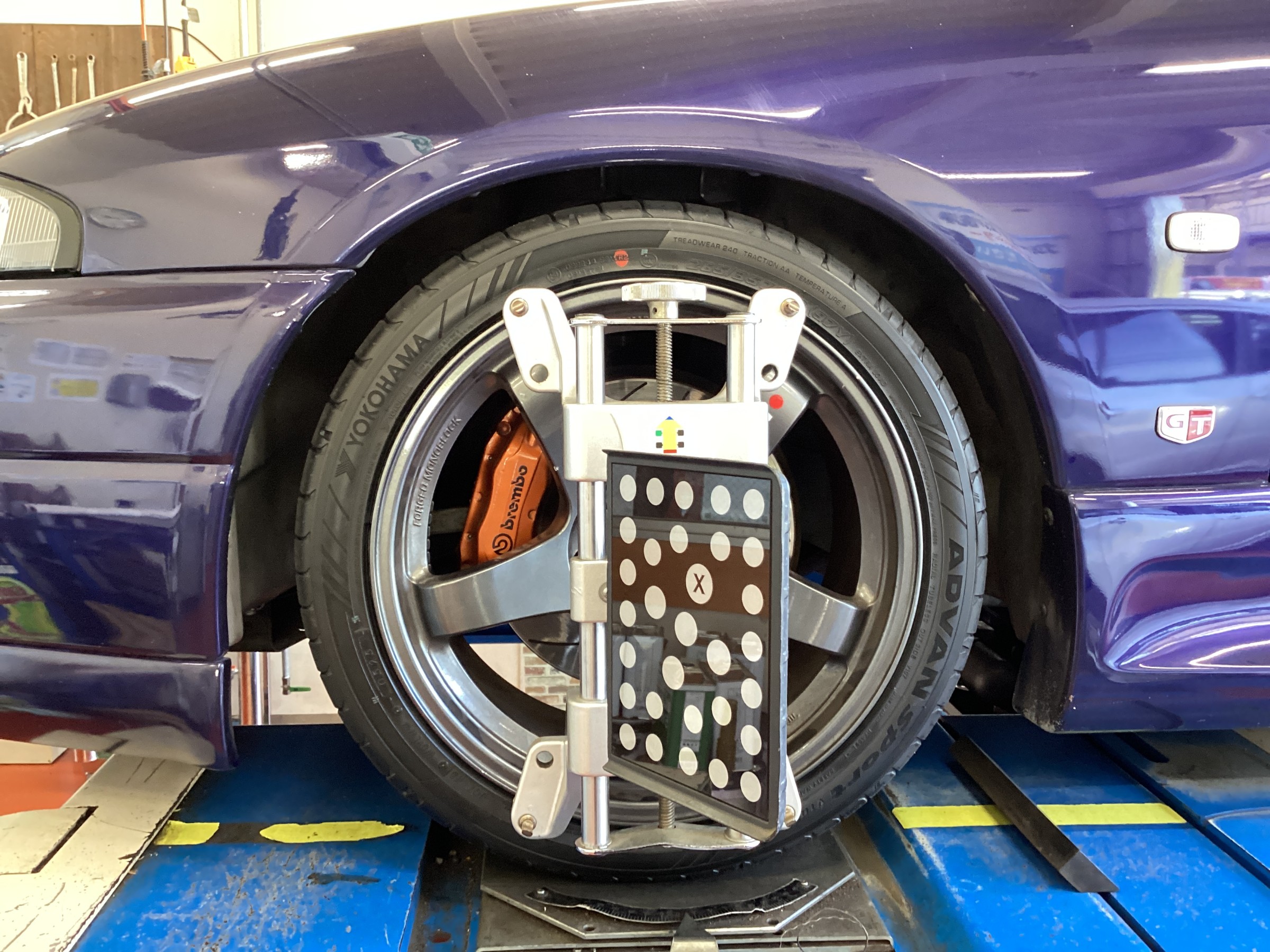 測定の結果、前輪が大幅なトゥアウトの状態となっておりましたので、
