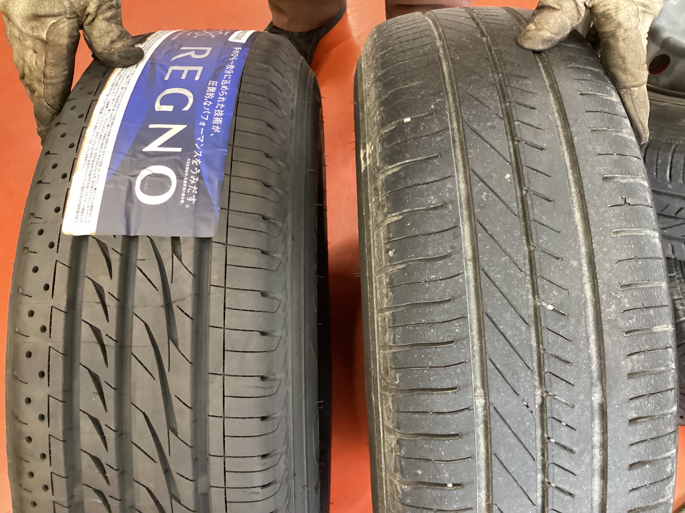 新品タイヤと交換前のタイヤ