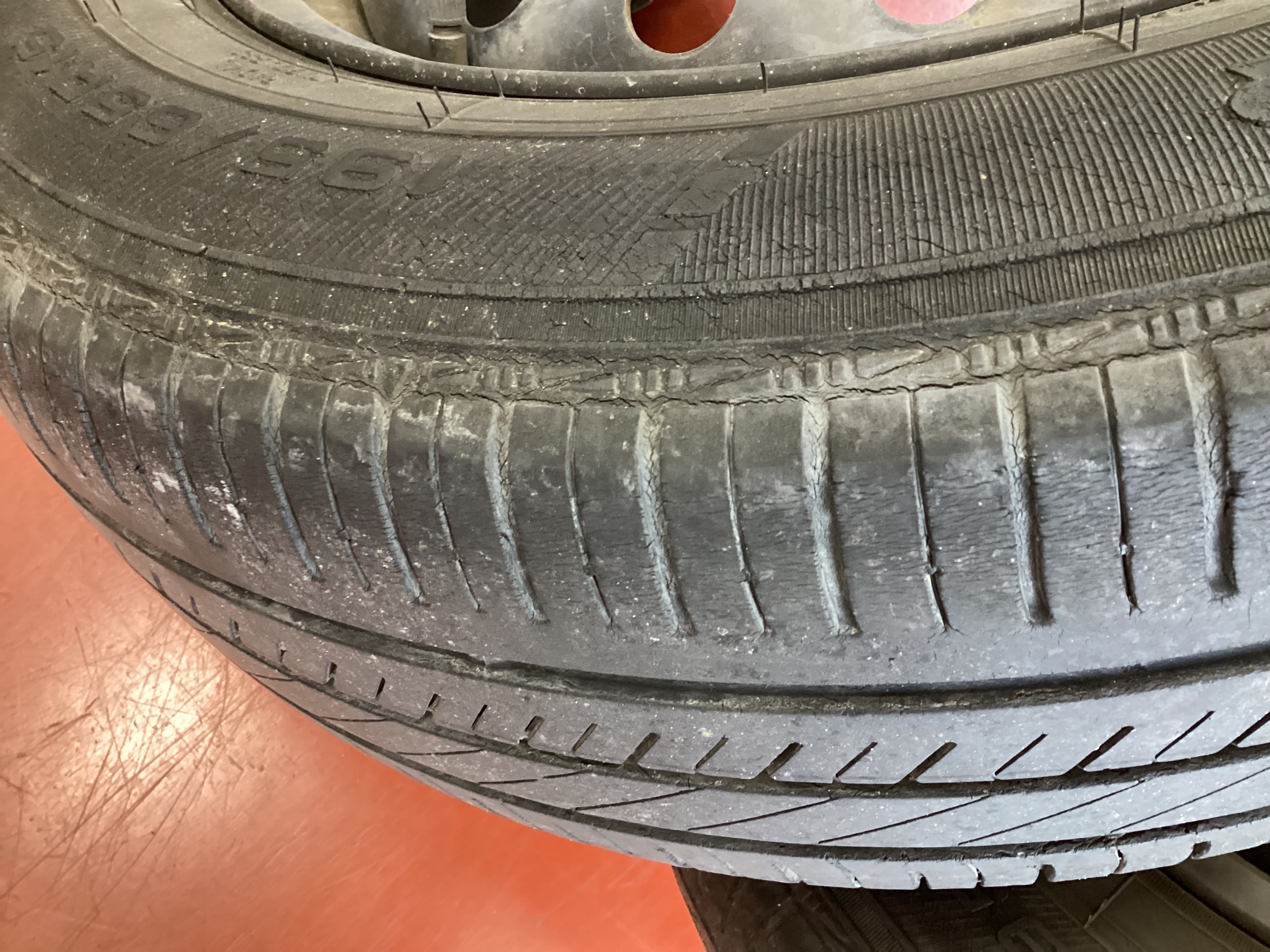 タイヤの横の部分にもだいぶヒビ割れが入ってしまっています